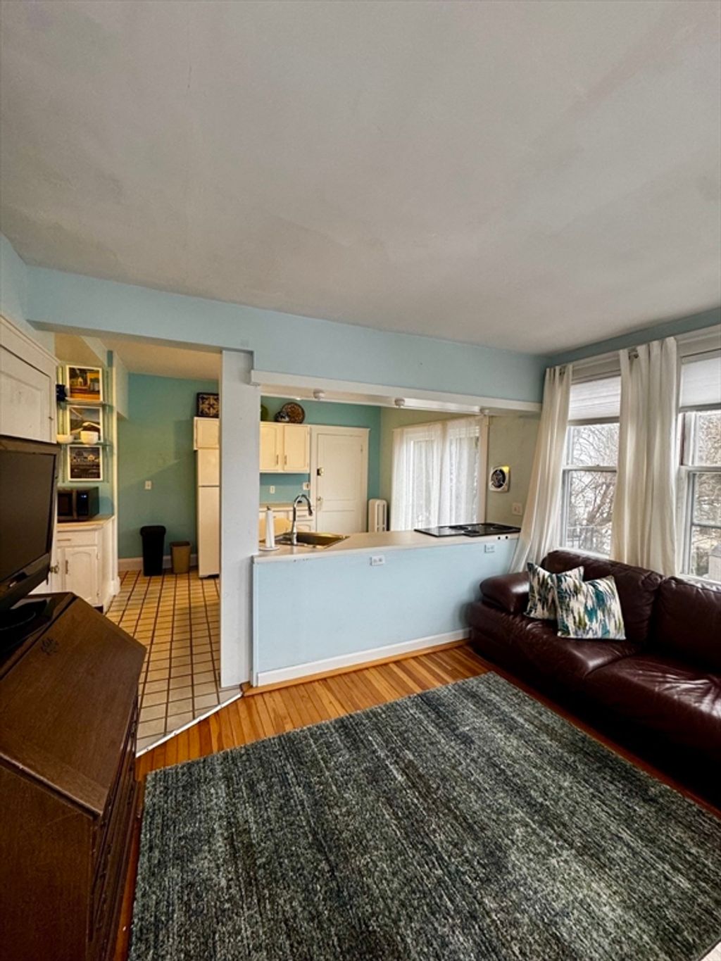 Unusually large 2 bedroom/2 bath apartment in a beautifully maintained historic home, minutes from downtown Salem. As you approach this fine Queen Anne Victorian with its corner turret, you begin to appreciate that is not a standard rental apartment. The rooms are graciously scaled, with original detail and modern updates. The kitchen-family room is bathed in light with 7 windows and a sliding French door leading to deck, perfect for morning coffee! The apartment is nicely divided with living on one side and bedrooms with a full bath on the other, affording the bedrooms extra privacy. On the living side, a dining room and adjacent large living room with a charming 5 sided bay. These rooms are bathed in light...this is a sunny home! A half-bath adds convenience. Tandem parking for 2 cars. Conveniently situated one block from Osgood Park (and the harbor!) and a few blocks from Forest River Park. May be rented furnished if you like!