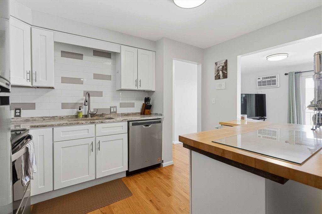 Professionally managed 32-unit community ideally located in the heart of Saugus. This beautifully updated 2-bedroom condo offers the perfect blend of comfort, style, and convenience. The renovated kitchen features white shaker cabinetry, granite countertops, stainless steel appliances, and a breakfast bar that flows seamlessly into the hardwood dining area. A bright and spacious living room opens to a private balcony ideal for morning coffee or unwinding after a long day.Both bedrooms are generously sized with ample closet space, and the updated full bath showcases modern finishes. Heat and hot water are included in the condo fee.Easy access to Route 1, i-95/128, downtown Boston (~10 miles), Shopping and Dining just down the street, Revere Beach is ~6miles. Looking for your next home or a smart investment, this is a move in ready unit for you!