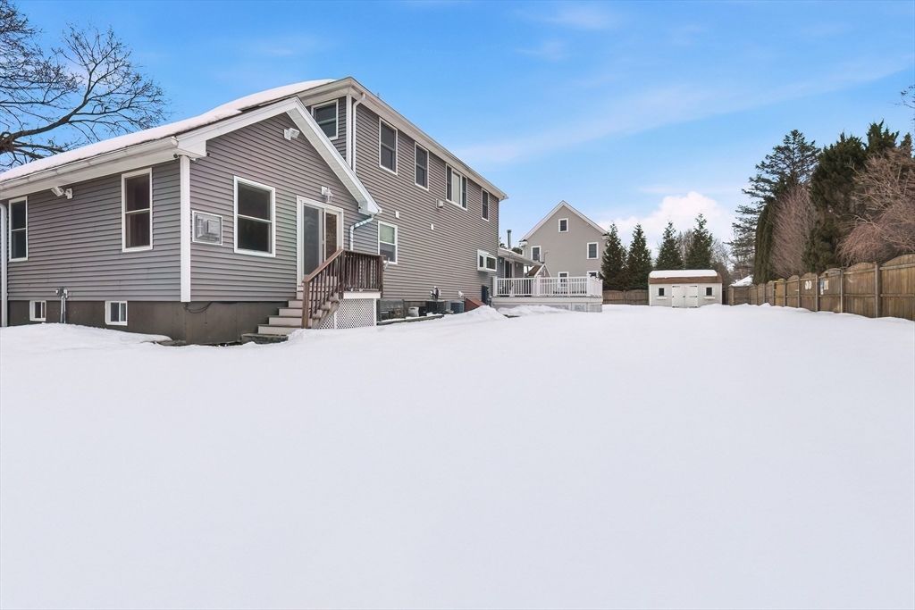 Welcome to this meticulously maintained Colonial located on a quiet street in desirable West Peabody. Step inside to a sun-drenched open concept great room featuring cathedral ceilings, abundant natural light, and a cozy wood-burning fireplace. The kitchen shines with granite countertops, a large center island, and ample space to entertain. This home offers two beautifully appointed primary suites. The first-floor primary bedroom features cathedral ceilings, a gas fireplace, a private en-suite bath, and direct access to the pool area. The second-floor primary suite offers gas fireplace, an expansive walk-in closet, and a fully renovated en-suite bath. The spacious finished basement with a wet bar creates the ultimate bonus space, perfect for entertaining or game nights. Step outside to this backyard retreat featuring an in-ground pool perfect for entertaining. A detached heated two-car garage and oversized driveway provide plenty of parking, storage, and year-round convenience.