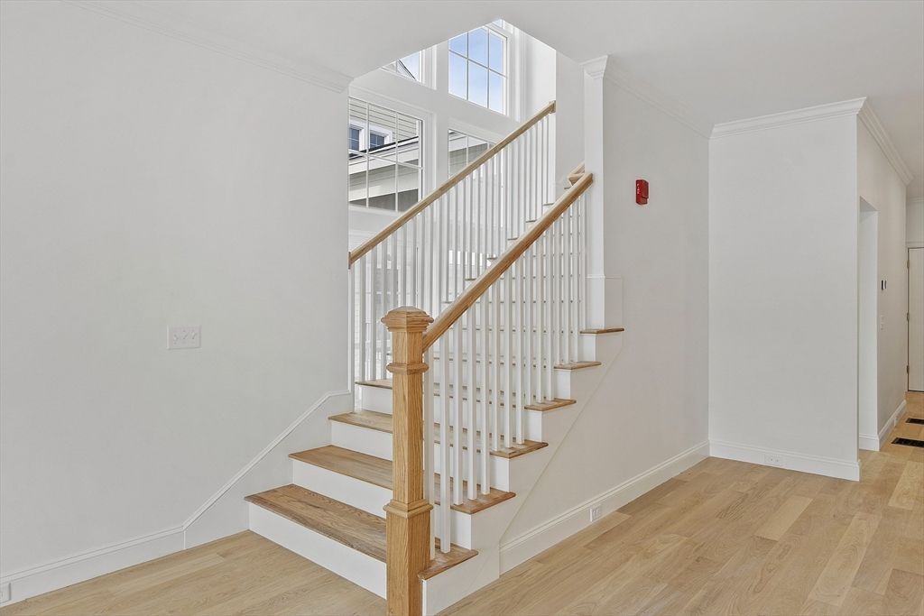 Step into your stunning, south-facing, light-filled townhome with shimmering water views. The expansive, open concept layout on the main floor features a chef's kitchen with stainless appliances, range with hood, a dining room for festive gatherings, and gorgeous living room with fireplace. A wall of windows and slider beckons you to the balcony overlooking the manicured lawns and serene pond where you may spot waterfowl and kayakers or fish for trout. 9ft ceilings with recessed dimmable LED lighting throughout, large closets, expertly crafted millwork, and an option for an elevator are just some of the many features you'll appreciate. 3 generous bedrooms including the primary suite and 3.5 bathrooms provide ample space for residents and guests. Choose to finish the lower level as an upgraded option. A lovely covered patio provides outdoor space for alfresco dining open to the flat backyard common lawns with adjacent boat launch. Zero Emissions bldg. Waterfront living at its finest