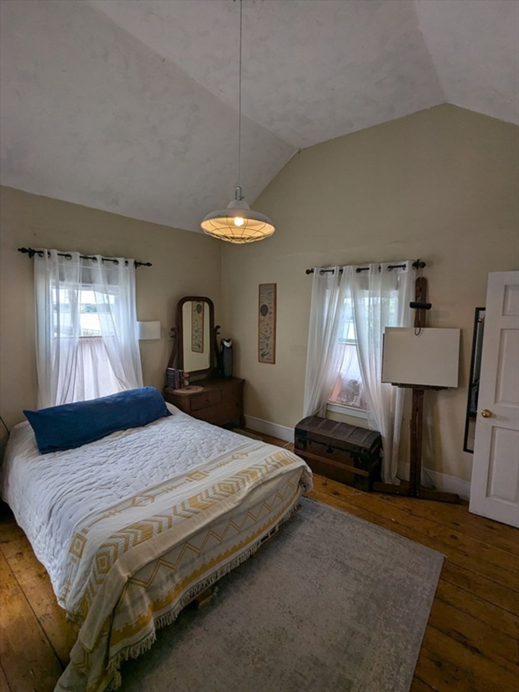 Experience the perfect blend of coastal serenity and modern convenience in this stunning 3-bedroom, 2-bath Salem home, available either furnished or unfurnished. Golden sunsets serve as your daily backdrop, visible right from your windows. The main level radiates character with warm pine floors and a sleek, modern kitchen featuring chic concrete countertops. A flexible third bedroom with a cozy fireplace makes for an ideal home office or guest space. Retreat to the spacious primary suite, boasting soaring vaulted ceilings, a large walk-in closet, laundry, and a private en-suite bath. Outdoor living is a dream with a private yard and a partially covered deck perfect for grilling and relaxing. This prime location is just minutes from downtown Salem's vibrant shops, dining, the waterfront, Salem State, and the commuter rail to Boston. Includes two-car parking. One well-behaved, housebroken dog is welcome - Sorry, no cats. 6 to 12 month lease. Available May 1st.