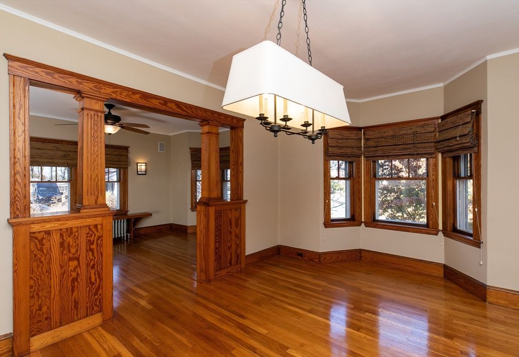 Preserved 1928 Arts & Crafts home, positioned on a corner lot, in a neighborhood setting just minutes from downtown Ipswich. This property offers easy access to the commuter rail, Crane and Pavilion Beaches, Appleton Farms and scenic trails. The interior maintains its original character through high ceilings, period details, hardwood floors and built-ins. A generous, updated kitchen serves as a central hub, with stainless steel appliances and gas cooking, while sitting adjacent to a sunroom entry. For those working from home, the 1st floor includes a private office with half-bath, also suitable as a den or library. Upstairs, 3 bedrooms are highlighted by a primary with vaulted ceilings and full bath. Modern comfort is integrated with mini-split A/C on both levels and most windows have been replaced. Outside, the backyard provides a relaxing retreat with a newer detached 2-bay garage. Rare find in move-in condition within an authentic North Shore community.