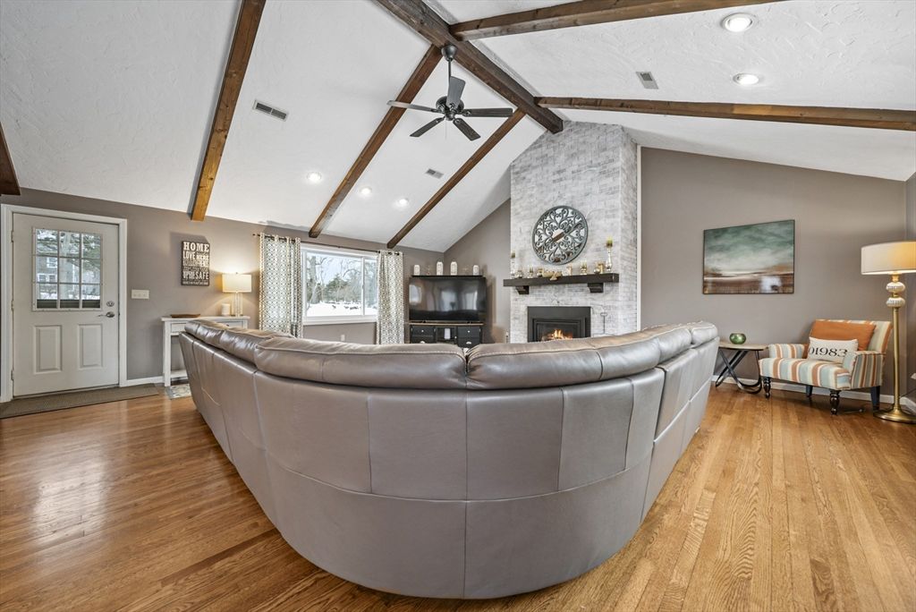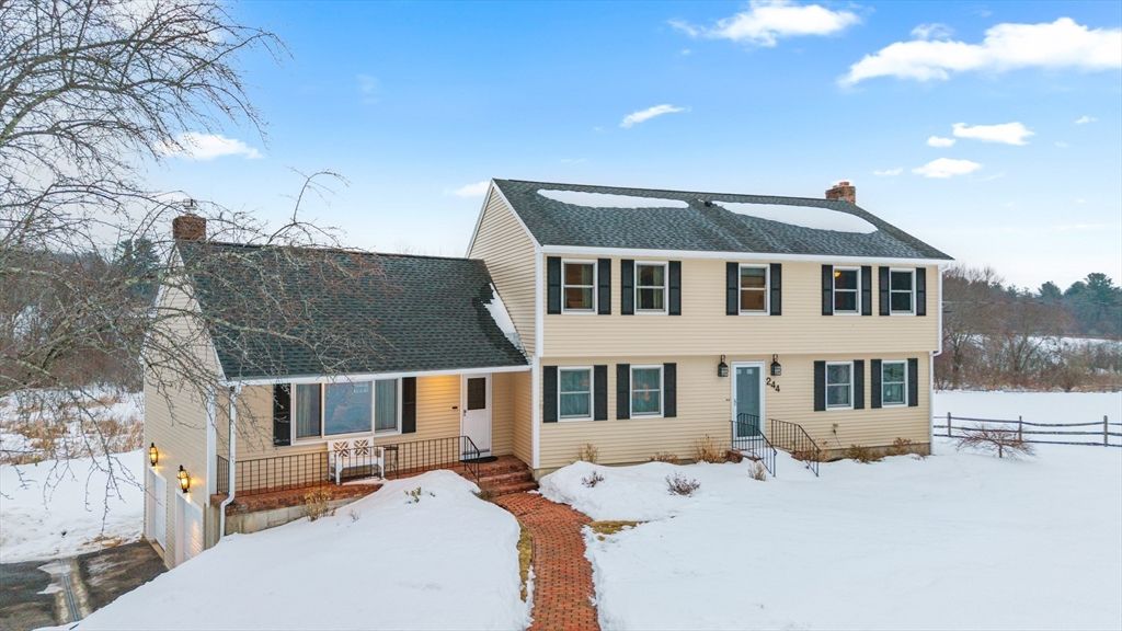 Situated on a 2 acre lot among farmland this stunning and meticulously updated, 4 bedroom, 2.5 bathroom expansive home has it all. An entertainers dream, this home has an open concept chefs kitchen with granite counters and oversized center island opening to dining area with wine bar, beverage fridge and additional cabinetry. The heart of this home is the great room with cathedral ceilings, floor to ceiling stone gas fire place, oversized windows and slider opening to deck. Formal living room with wood burning fireplace, updated half bath and laundry finish the first level. Upstairs there are 4 generously appointed bedrooms, a primary suite with California closet and bath with stone/tile fixtures, three additional bedrooms and another updated bath. Expansion potential in the walk out basement, opening to new patio and above ground pool. 2 car garage, all hardwood floors, tons of storage and updates throughout, this home is truly turn key. If you love to host, this gem is for you.