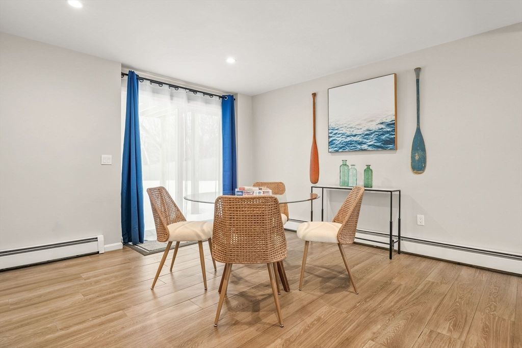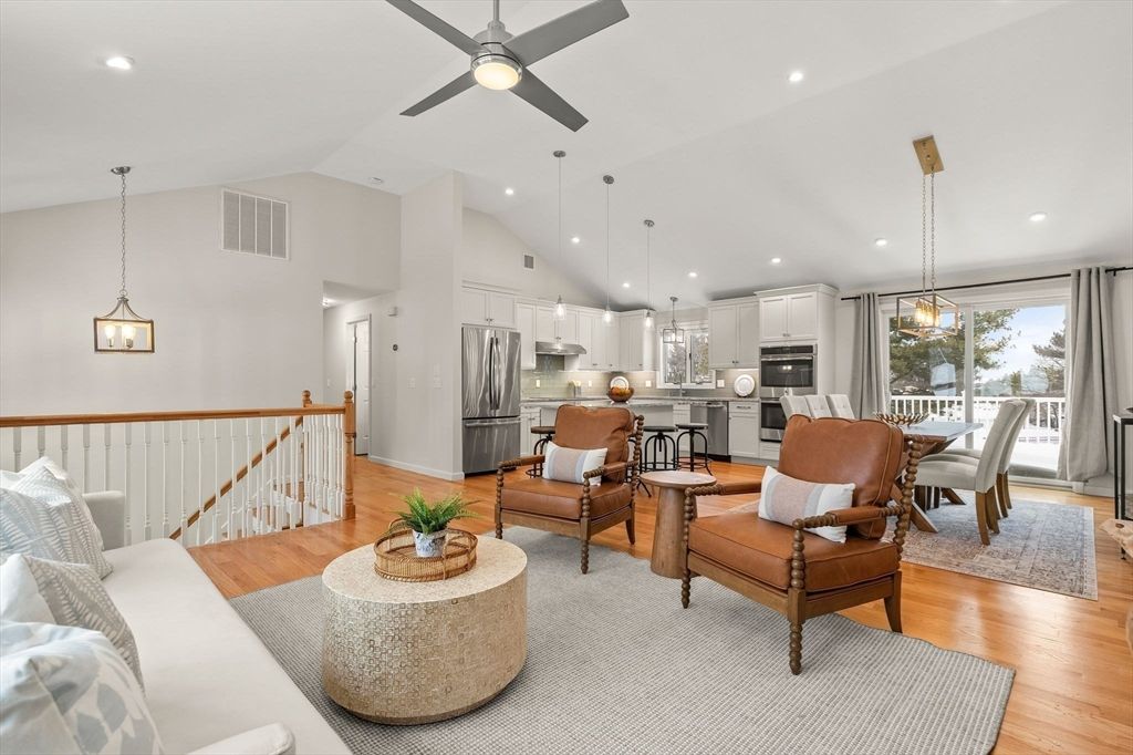 Set in one of Peabody's most coveted neighborhoods, this fully renovated 3-bedroom home is turnkey and ready to impress. The main level features vaulted ceilings and a bright, open-concept layout perfect for hosting and everyday living. An updated kitchen offers top-tier appliances and an oversized island, flowing seamlessly into the living and dining areas. A porch just off the kitchen overlooks the oversized yard, creating easy indoor-outdoor living with plenty of space to entertain or unwind. Three bedrooms and a spa-like bath adds a polished, modern feel and complete the main level. Downstairs, provides a second living area wired for a projector and sound system, garage access, a full bath, laundry and walk-out access to the patio - ideal for a family room, home office, or easily converted into a guest suite. Convenient to parks, shopping, and major routes, this home blends neighborhood charm with everyday ease.