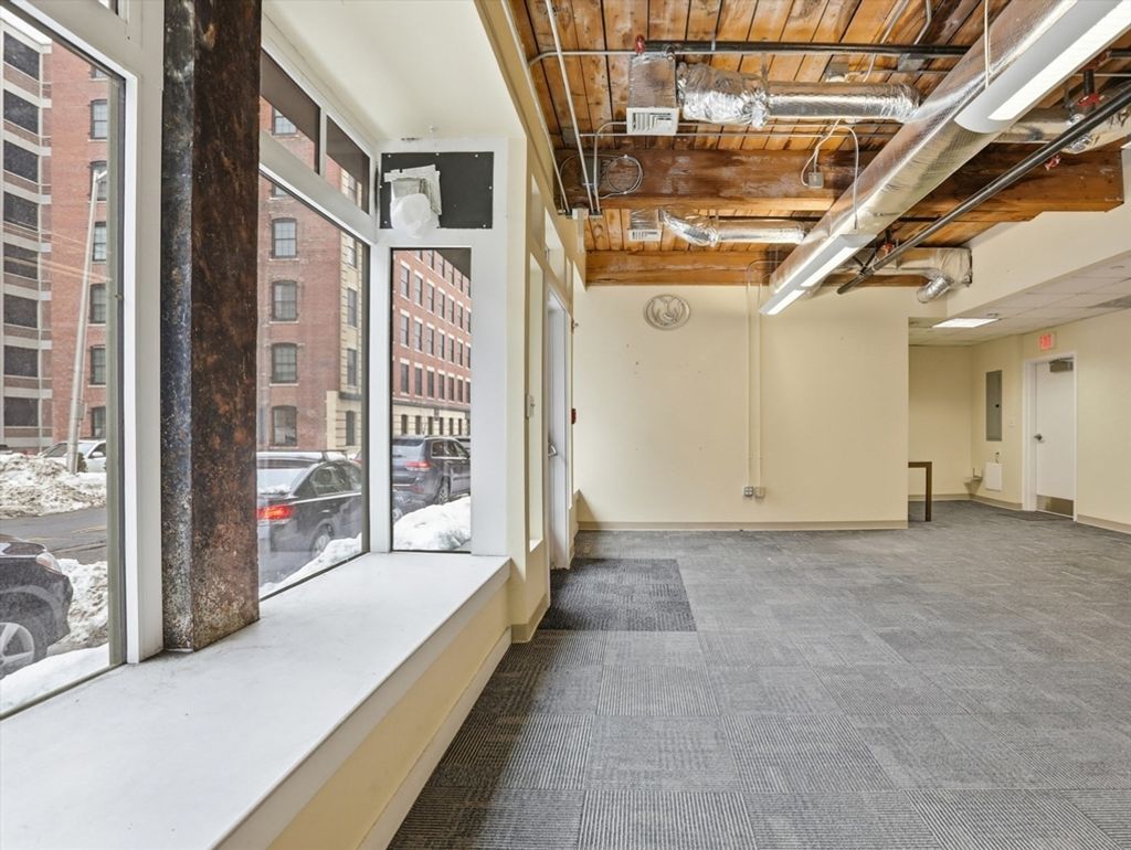 Street-level retail or office space for lease in the heart of Downtown Haverhill. This 600 RSF ADA-accessible storefront features full glass frontage along Granite Street, providing excellent visibility, natural light, & signage exposure, ideal for professional office, boutique retail, service business, salon, studio, or other use. The space offers a flexible open layout, 100% air conditioning, gas heat, & a private ADA-compliant restroom. Clean, efficient footprint suitable for a wide range of commercial uses. Offered on a Modified Gross lease basis- tenant pays utilities in addition to base rent for predictable occupancy costs. No NNN or CAM fees. Located steps from restaurants, cafes, shopping, and downtown amenities. The property benefits from MBTA commuter rail & bus access, with a municipal parking garage directly across the street for convenient customer & employee parking. Ideal opportunity for businesses seeking high-visibility storefront presence in a vibrant downtown setting