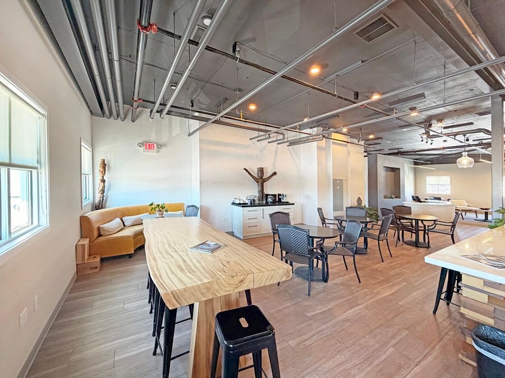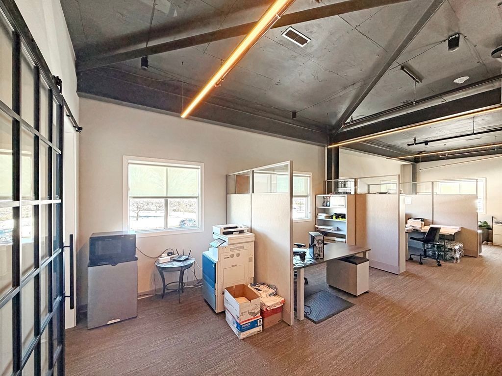 Professional office space now available at 190 State Street - Upper Level, located in Newburyport's desirable Rail's End District with immediate access to Route 1 and just minutes to the commuter rail. This elevator-serviced building offers high ceilings, abundant natural light, and flexible layout options ranging from 438 SF to 2,227 SF, with build-to-suit possibilities to accommodate a variety of professional uses. Tenants enjoy access to an impressive 1,825 SF common lounge and kitchen area, creating a collaborative and welcoming environment for clients and staff alike. Ample rear parking is available, and rent includes utilities and CAM, providing simplified, predictable operating expenses. Ideal for medical, professional, creative, or administrative office users seeking convenience, accessibility, and a modern setting.