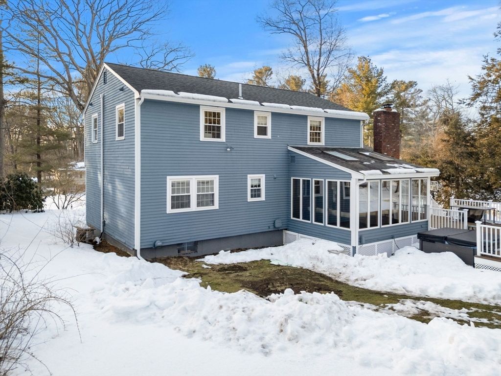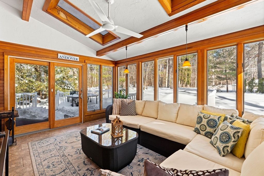 This home checks every box! Beautifully renovated, meticulously maintained, cul-de-sac neighborhood, close to all things Andover & a great commuter location. Nothing to do but move in! The minute you enter this open and sunny layout you will know you are home. The granite and stainless kitchen is the heart of the home w/a large island and a breakfast bar overlooking the front to back family room with fireplace and built ins. Steps away is the dining room and 4 season sun-room that opens onto a large composite deck w/hot tub overlooking the backyard- the perfect place for entertaining family & friends. The living room w/french doors, private office & half bath complete this level. Upstairs you will find a primary suite with sitting area, walk in closets & private bath, 2 add'l bedrooms & a full bath. The heated lower level has a great flexible space that could be a gym, 2nd office or playroom. 2 car garage, hardwood floors and so many updates make this a home you don't want to miss!