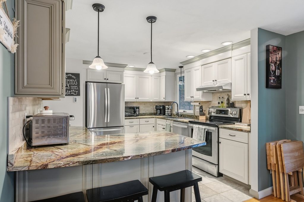 Set back on a scenic country road in the Forest Street area of desirable North Andover - known for its top-rated schools - this charming split-level home sits on a private 1.12-acre lot offering a peaceful, wooded setting. Located just minutes to the historic Old Center and close to local amenities, this home blends convenience with privacy. The main level features a sun-filled living room with a stunning oversized bay window, a beautifully updated kitchen with detailed cabinetry, granite countertops, and stylish backsplash, plus a dining area ideal for gatherings. Warm, inviting tones throughout create a cozy feel you'll love coming home to. This level also includes two bedrooms and 1.5 baths. The lower level offers a second living area, additional bedroom, and laundry"”perfect for guests, office space, or flexible living. Mini splits installed January 2024 for efficient heating and cooling. Don't miss this opportunity"”schedule your private showing today!