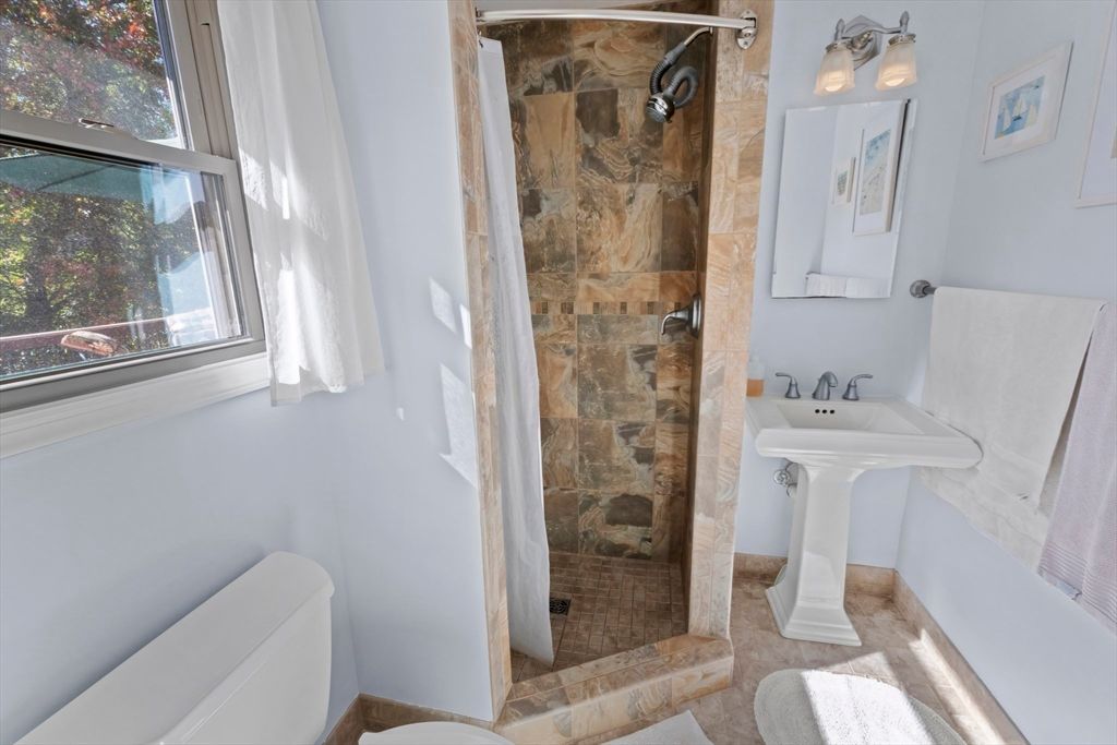 Welcome to this spacious 3-bed, 2.5-bath split entry home in desirable Bradford! The open floor plan showcases a vaulted ceiling & skylights in the living, kitchen, & dining areas, filling the space with natural light. The kitchen features granite countertops, sleek black appliances, and a seamless flow into the dining area & sunroom with a cathedral ceiling, perfect for relaxing or entertaining. The primary bedroom offers a private en suite, while two additional bedrooms share a full bath. The lower level expands the living space with a versatile family room, with two more spacious bonus rooms, a half bath, laundry room, & abundant storage. Enjoy outdoor living on the composite deck & patio overlooking the expansive, fenced-in yard. Additional highlights include a walk-out basement, central air, and a detached 2-car garage with storage above. Within steps to Bradford Country Club, Swim Club, IceCream Stand, the MBTA Haverhill Line, Minutes to Rt 495. List Agent related to Seller.