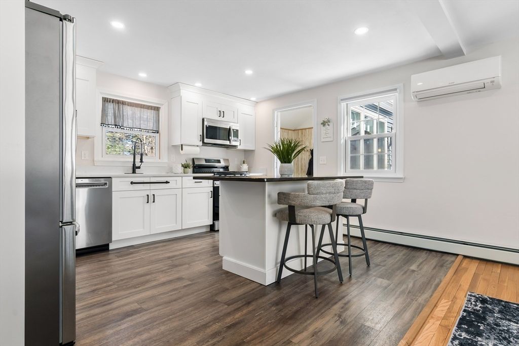 Completely updated in 2023, this charming 4-bedroom, 2-bath Cape is nestled in a sweet neighborhood and offers a bright, open floor plan perfect for today's lifestyle. The beautifully renovated eat-in kitchen features crisp white cabinetry, granite countertops, stainless steel appliances, and a large center island with seating"”ideal for gathering and entertaining. The flexible layout includes two bedrooms and a full bath on the first floor, plus two additional bedrooms and another full bath upstairs. Enjoy hardwood floors, energy-efficient mini-splits for cooling, and peace of mind with a brand-new septic system (2023). An oversized 2-car garage provides ample space for vehicles, storage, or a workshop. The full basement offers excellent potential to finish and expand your living space even further. Move right in and enjoy modern updates, comfort, and convenience in a wonderful neighborhood setting. Enjoy the serene setting abutting the Groveland walking path.