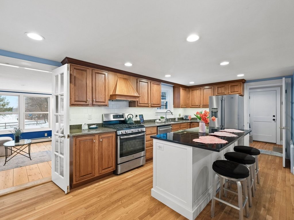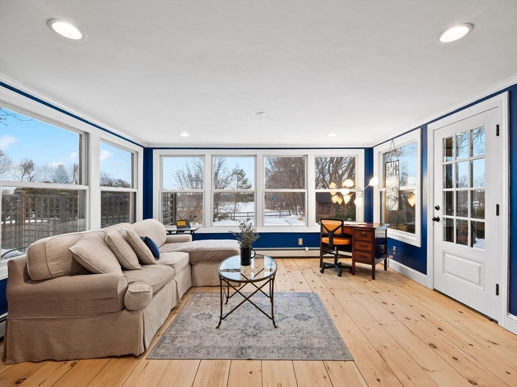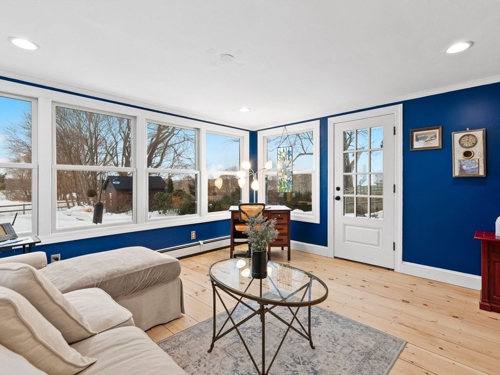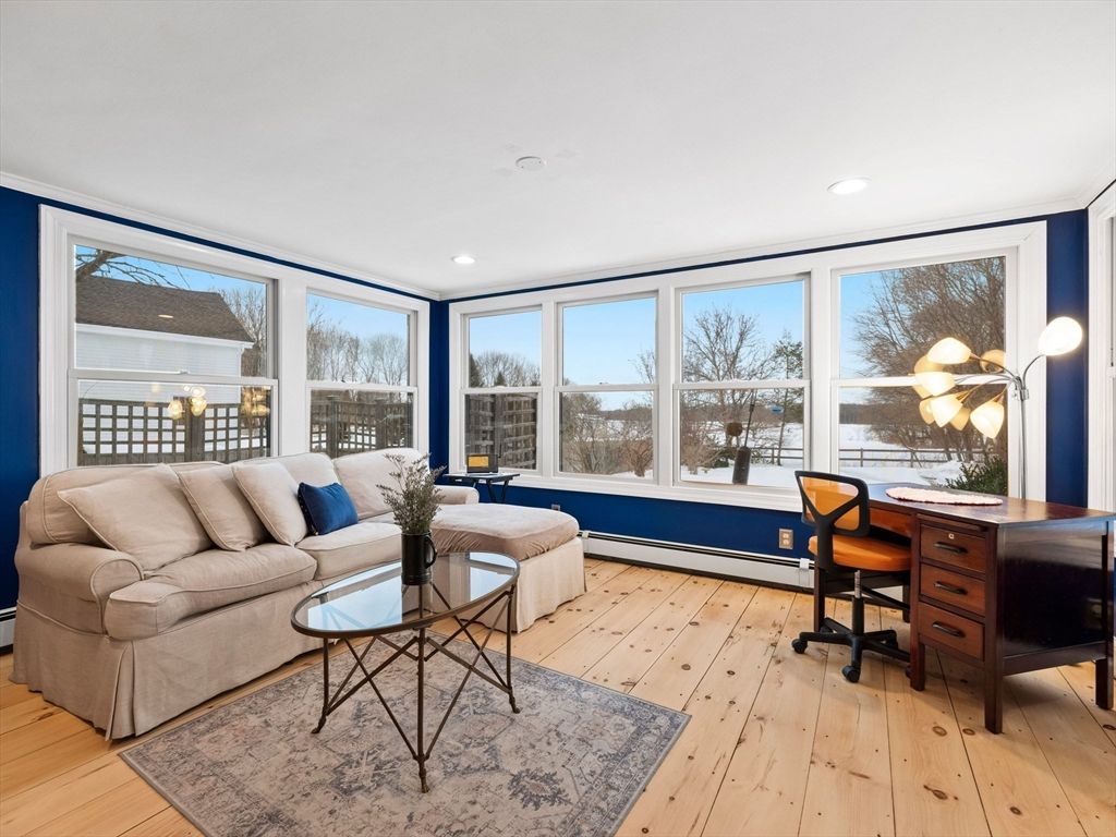 This unsuspecting home is just minutes from beaches and downtown Newburyport, and offers the perfect blend of charm, updates, and low-maintenance living. This delightful Cape-style home is a bird watcher's paradise with captivating views from the all-season sunroom. Gleaming hardwood floors throughout, built-in cabinetry in the dining and living rooms, and a thoughtfully remodeled kitchen featuring new hardwood flooring, s/s appliances, and an impressive 6 foot island open to the dining area-ideal for entertaining. The living room strikes the perfect balance of spacious and cozy, complete with a wood-burning fireplace and a charming bench seat overlooking the backyard. Meticulously maintained, this home shines with recent updates including a brand new furnace, 2021 windows, 2018 septic, and a 50-year metal roof"”giving you peace of mind for years to come. See the feature sheet for more details and don't miss this opportunity. Sunrise and sunset views - Newbury beckons!