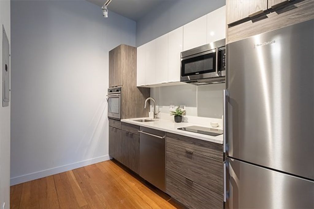 Third floor studio in downtown Lynn's historic Woodbury Flats Building. All new construction with hardwood floors, European designed kitchen, tile bathroom and unique period details throughout. So close to the commuter train and pet friendly too! Tenant pays electric utilities and sub-metered water. First Month's rent and full month security deposit required.