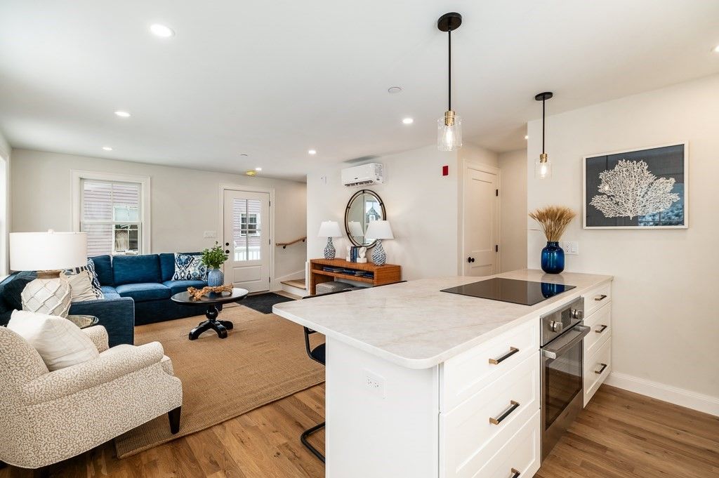 New one bedroom condominium unit in Beautiful Downtown Essex. All new systems including open concept first level with hardwood oak floors, McCormick Kitchen with white shaker cabinets, quartz countertops, center island for eating, New appliances including induction cooktop with oven under. Dishwasher and SS Fridge. A very functional half bath is located on this level which opens to the living area with plenty of light, Upstairs there is the main bedroom with a full bath and stack laundry, and up another flight of stairs brings you to a bonus room with vaulted ceilings, double closets and windows looking out toward the Essex River. Come take a look, this could be the perfect get -a -way. or a place to call home. Basement unfinished great for storage of your things One car parking One of 4 units in this new building.