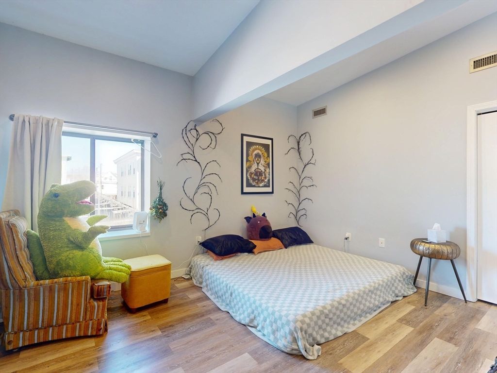 Welcome to 11 Margin St a sun-drenched, townhouse-style condo in the heart of Lynn offering three levels of thoughtfully designed living that feels far more expansive than a typical one bedroom. Enjoy beautiful river views from the bright living room featuring a brand new slider that opens to your private covered deck perfect for morning coffee or evening unwinding. The fully equipped kitchen with breakfast nook flows effortlessly into the living space, while fresh paint and new recessed lighting create a clean, modern feel throughout. Upstairs, the oversized bedroom impresses with vaulted ceilings, double closets plus an additional closet, and direct access to the full bath. A dedicated space for a full-size washer and dryer, an in-ground pool, clubhouse, assigned parking just steps from the entrance, and guest parking complete the package. Move-in ready and offering lifestyle, light, and location. This is the one buyers have been waiting for!