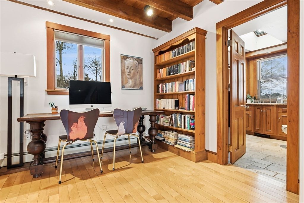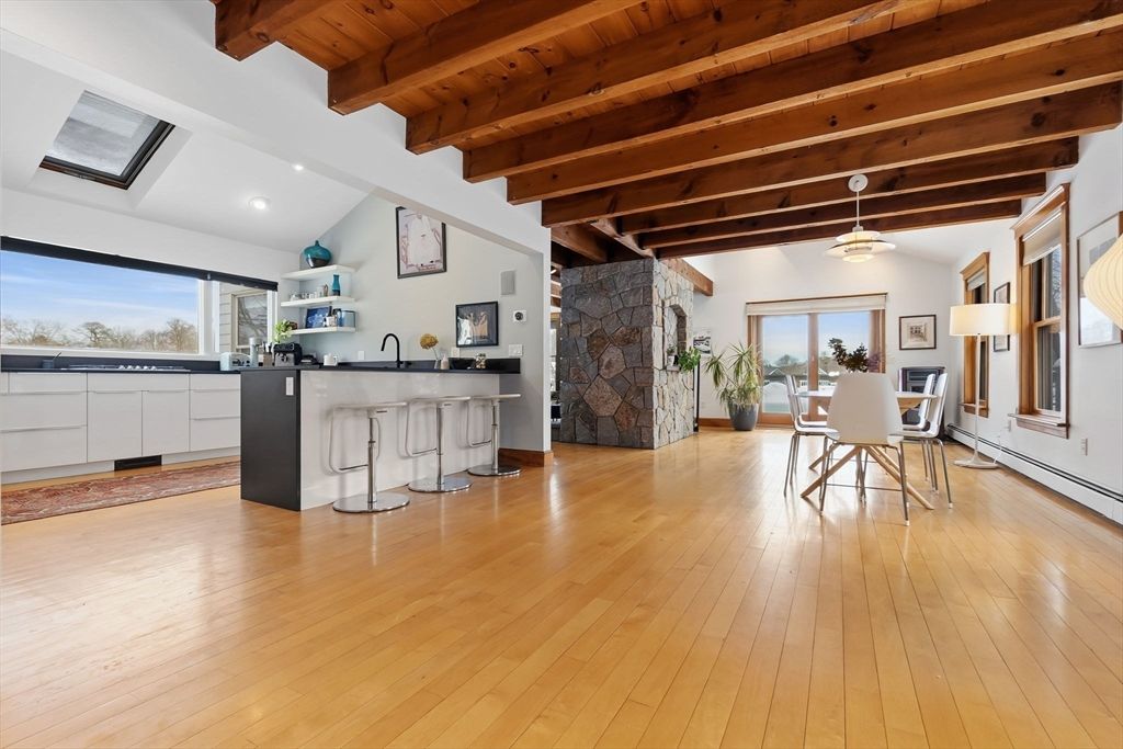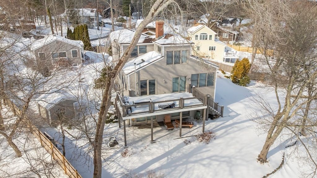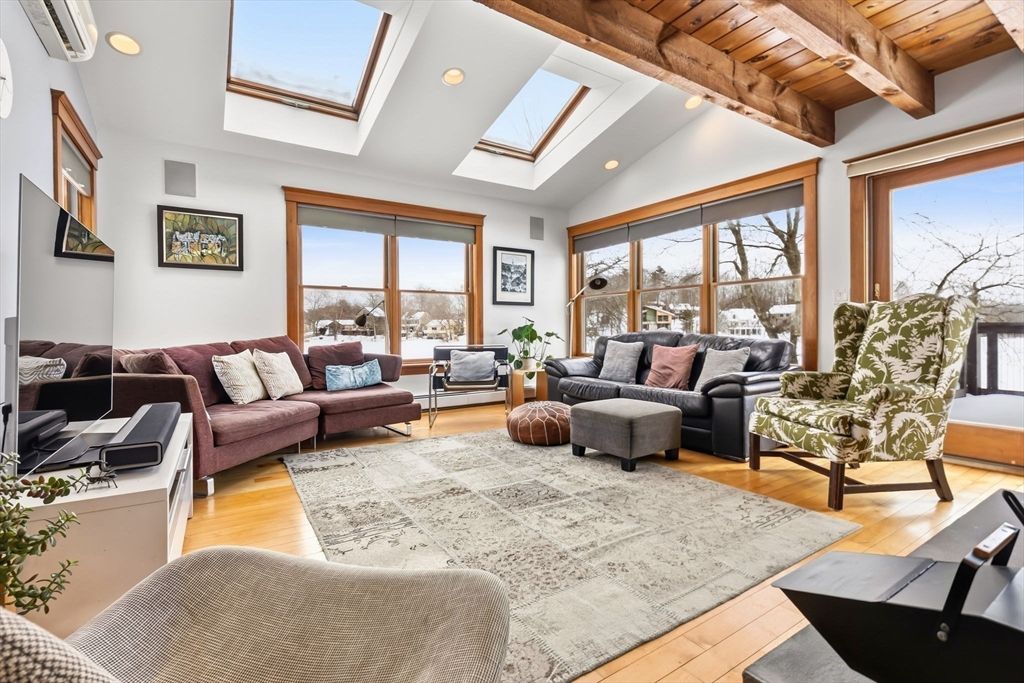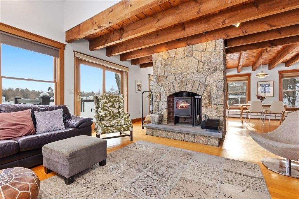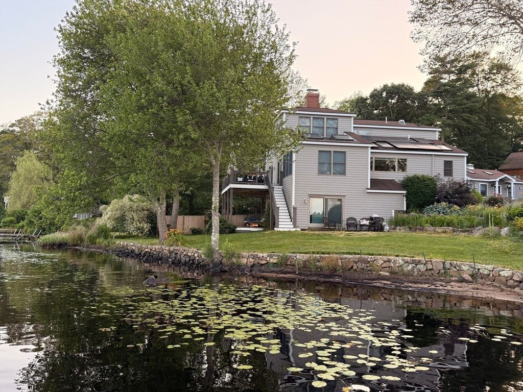 Make every day feel like a vacation in this stunning lakefront retreat! Set along Chebacco Lake, this three-bedroom, three-bath contemporary home with a separate cottage offers year-round recreation and beautiful sunrise views. The open main level features beamed ceilings, expansive windows, custom stone fireplace and a modern kitchen with island flowing into a spacious dining area. Upstairs, the primary suite includes a full bath and flexible bonus room ideal for an office or nursery. The lower level offers two lakeview bedrooms with sliding doors to the waterfront, plus a playroom, full bath, and laundry. A detached cottage provides excellent in-law, guest, or income potential. Extras include owned solar panels, private dock, Tesla charging station, landscaped gardens, and inviting patio and deck spaces designed for lakeside living. First open house Saturday, March 7th at 11:30 am.