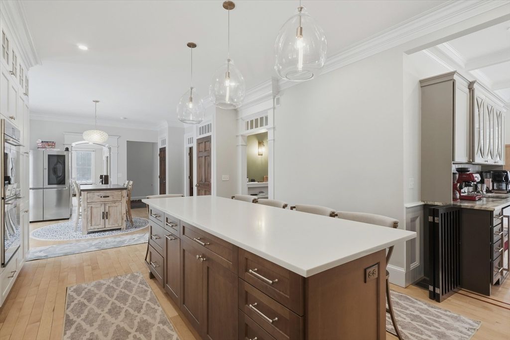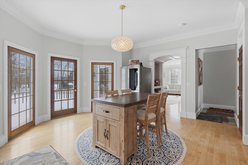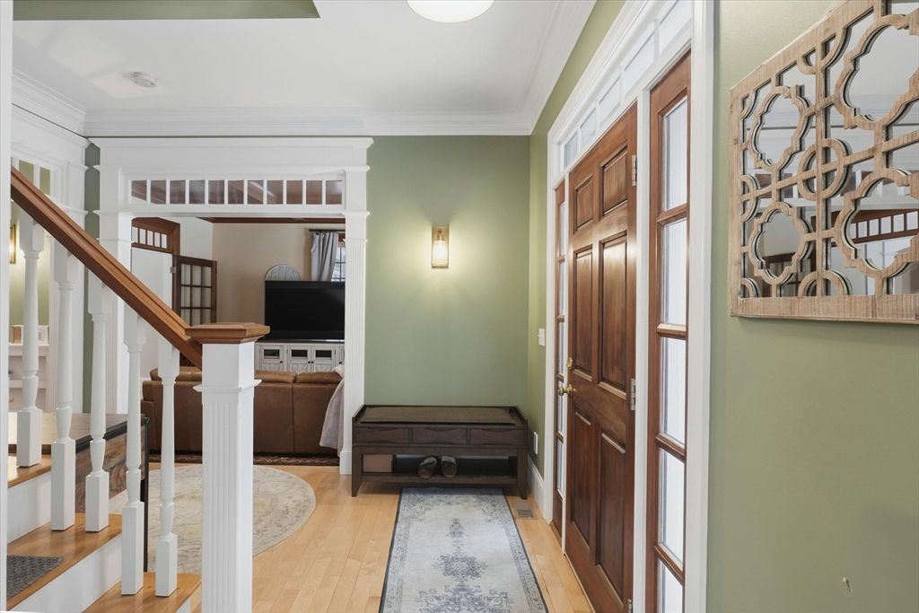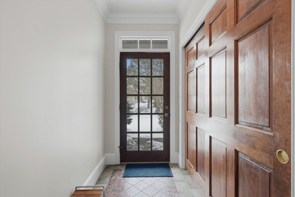 Ideally located just minutes from Newburyport's shops, restaurants, & waterfront. Circa 1998 custom-built home offers exceptional quality and thoughtfully designed layout ideal for entertaining & working from home. Architectural highlights include extensive built-ins, coffered ceilings, maple floors w inlaid cherry border, & bay windows, 11-foot ceilings, & fine millwork throughout. The home provides a rare balance of privacy & convenience, combining a country-like setting with close proximity to the beach & 2.5 miles to downtown Newburyport. Designed for seamless indoor-outdoor living, the layout flows naturally, featuring a new gourmet kitchen, screened porch, and elegant dining room w/ a wet bar. A dedicated home office. The primary suite offers a spacious bath with dual vanities, new tile shower, a 6' soaking Jacuzzi style MTI tub, & 2 walk-in closets. Additional potential includes a walk-up third floor ready for expansion and a finished lower level for an exercise room.