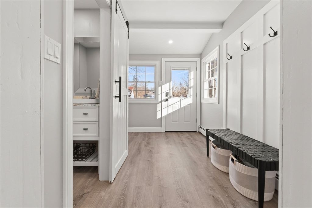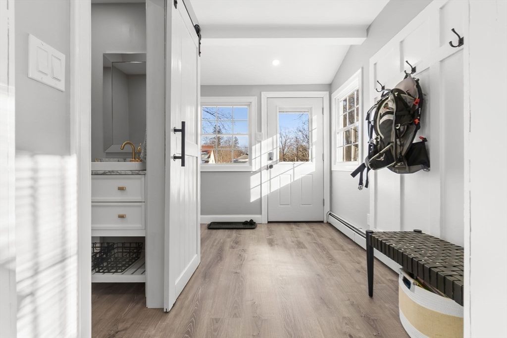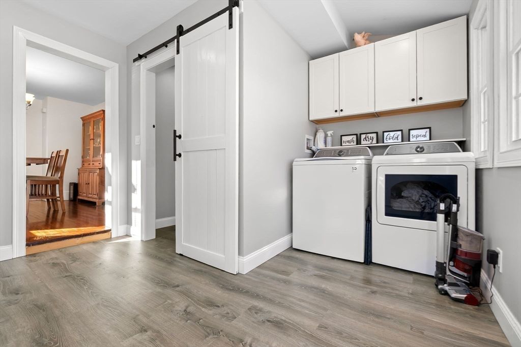 Welcome home to this fantastic Dutch Colonial in Bradford where New England charm meets everyday comfort! This well maintained home offers sun-filled living areas and a floor plan perfect for relaxing and entertaining. The large living room features hardwood floors and a fireplace that is currently used as decorative only. The dining room with hardwood floors leads to the kitchen that is ideal for cooking and overlooks the spacious back yard. The newly updated laundry and mudroom make the chore of laundry a breeze and is just off the new half bath with exterior access out to the deck and yard. Upstairs are the three bedrooms and full bath. Walk up attic ideal for storage and access those seasonal items. Outside is an oversized deck overlooking the fenced in backyard. A shed and full walk out basement offers plenty of storage. Convenient to major routes, shopping and restaurants and just minutes away from this home!