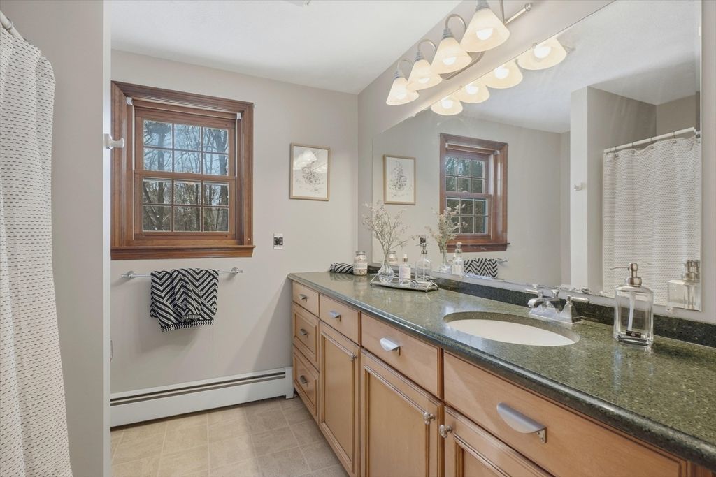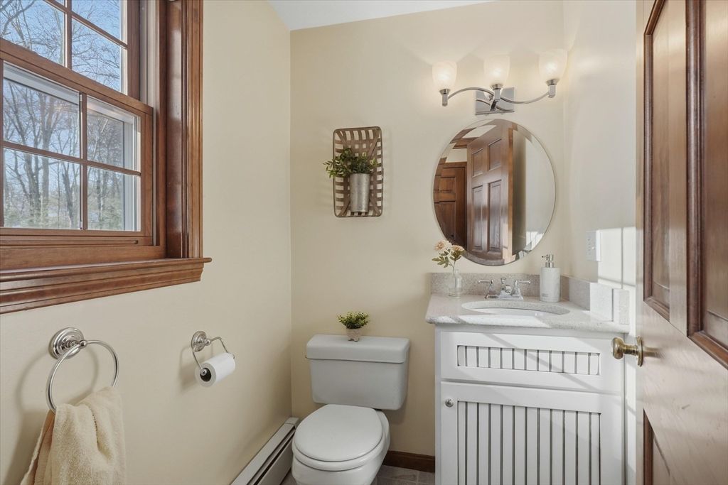 Welcome home to this classic 3 bedroom, 2.5 bath Colonial filled with natural light & timeless appeal. A traditional layout offers warm, comfortable living with sunlit family & dining spaces that create an easy flow for everyday living & entertaining. The kitchen features granite countertops & connects seamlessly to the main living areas. French doors open to a spacious screened porch overlooking the private backyard, perfect for relaxing or outdoor enjoyment. Upstairs, the generous primary suite offers an oversized walk in closet & en suite bath with quartz countertops. Two additional bedrooms & a full bath with quartz counters provide flexibility for family, guests, or a home office. Maple hardwood floors add warmth throughout. A spacious two car garage w/ newer garage doors, a storage shed & a 7 year old boiler add value, functionality & peace of mind. Convenient to top rated schools, shopping, dining & commuter routes to Boston, this home offers comfort, convenience & easy living!