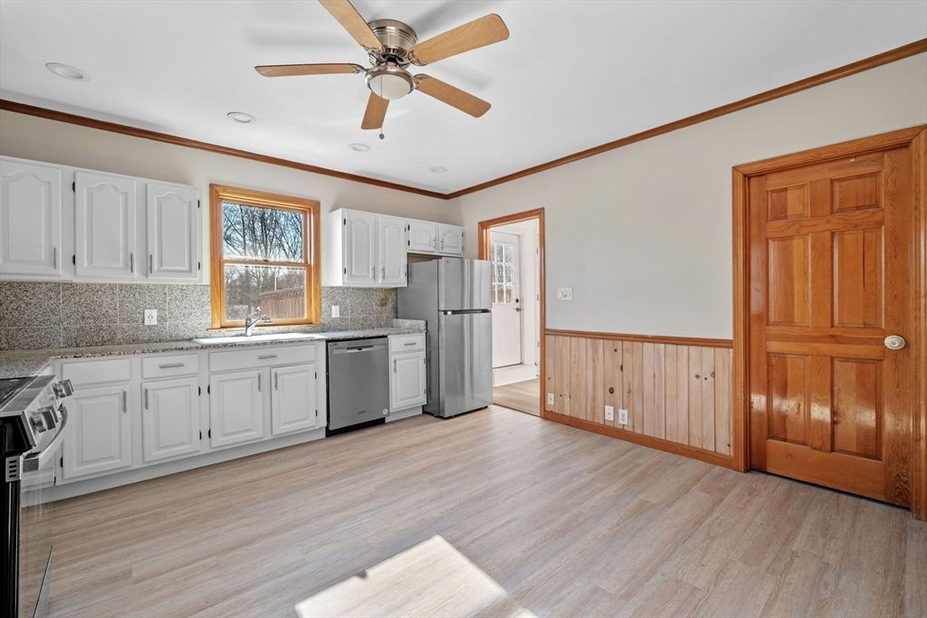 Charming 4 bedroom, 2 full bath, two-level apartment in a great Salem location. Pull into your garage spot or second parking spot outside of the garage and head on in to your kitchen with granite countertops, stainless steel appliances and recessed lighting. The first floor is also made up of a large living room with remote ceiling fans, large bedroom and bathroom. Second floor includes three bedrooms and a bright open hallway with wide pine wood flooring and a bathroom. Other amenities include exclusive use deck, laundry in the basement and a shared yard. Take advantage of this location and enjoy local shops, parks, commuter rail and so much more. Available now, first month free. Schedule a private showing today!