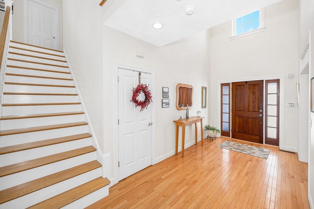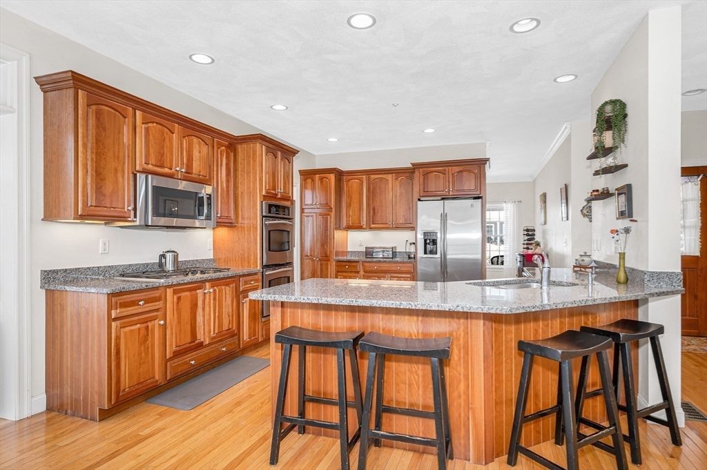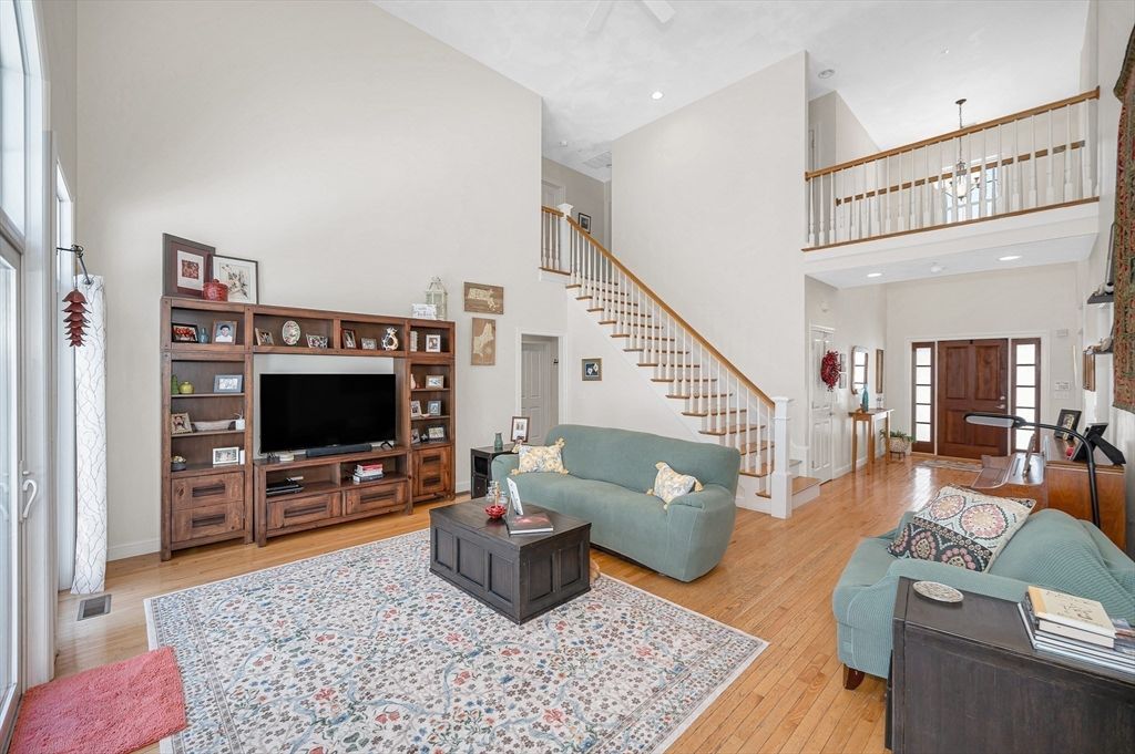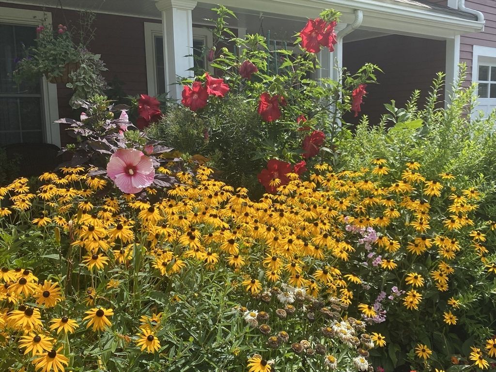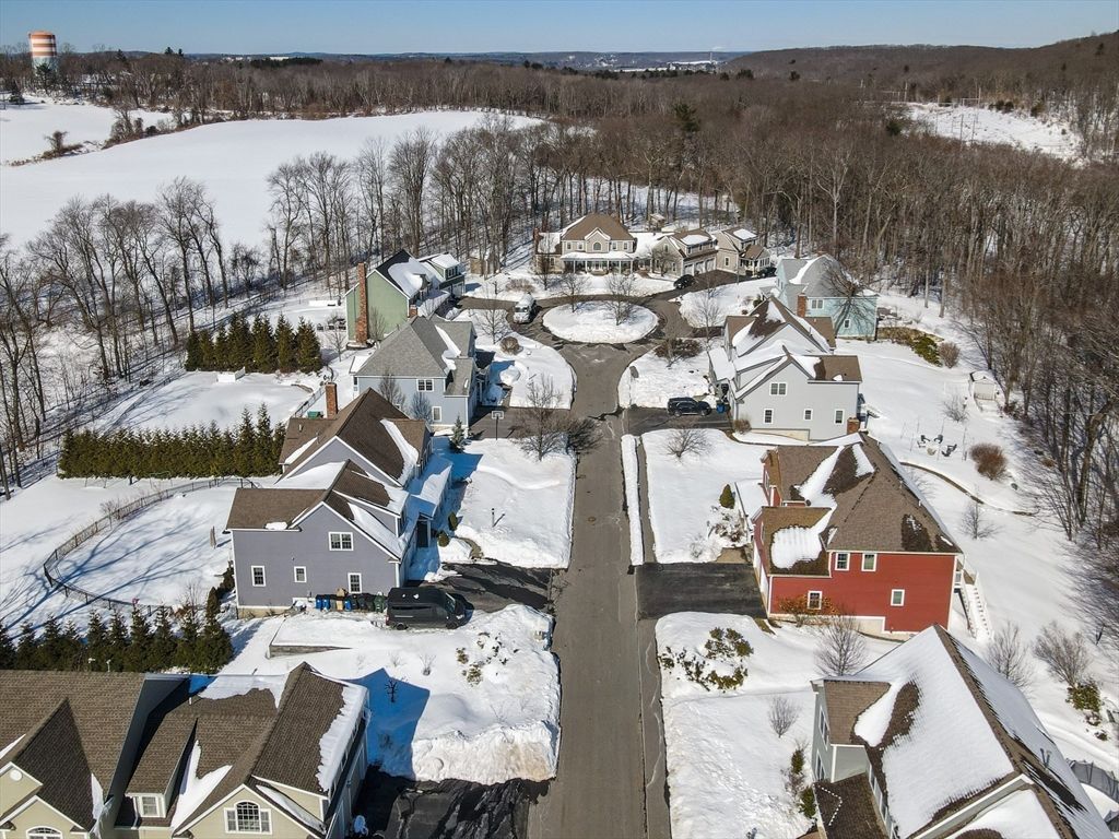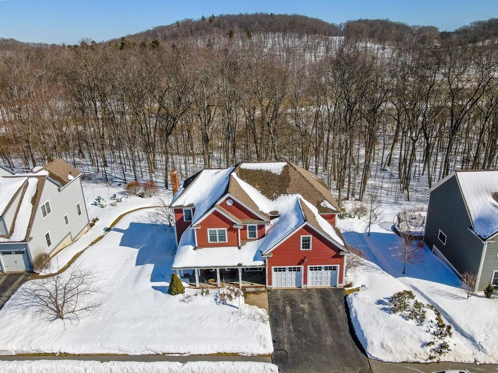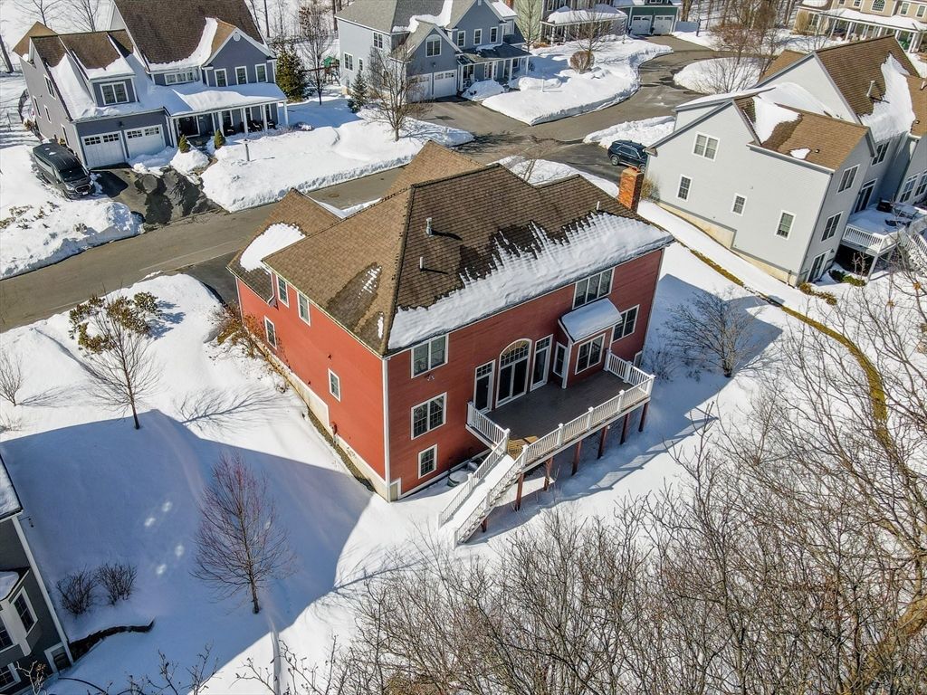 This striking Contemporary Colonial is ideally situated on a fabulous cul-de-sac centered around a charming village green and playground"”the heart of this 17-home neighborhood. This home is enhanced by exquisite perennial landscaping providing vibrant blooms & natural beauty from spring through fall. Relax on the wraparound stone farmer's porch and enjoy peaceful seasonal views. The dramatic TWO-STORY FOYER leads into the GREAT ROOM w/interior balcony & a wall of windows with a slider leading to the oversized composite deck. The chef's kitchen offers ample cabinetry, granite counters & an enormous center island seamlessly flowing into the fireplaced den. Lovely formal dining room w/transom doorway. There is a nicely sized OFFICE or FLEX room on this level. Large primary bedrm ensuite w/walk-in closet, dual sinks, jetted tub & shower, 3 additional nicely sized bdrms & full bathrm w/dual sinks. Large 2c garage just steps to the 1st fl laundry rm. Basement offers expansion potential.
