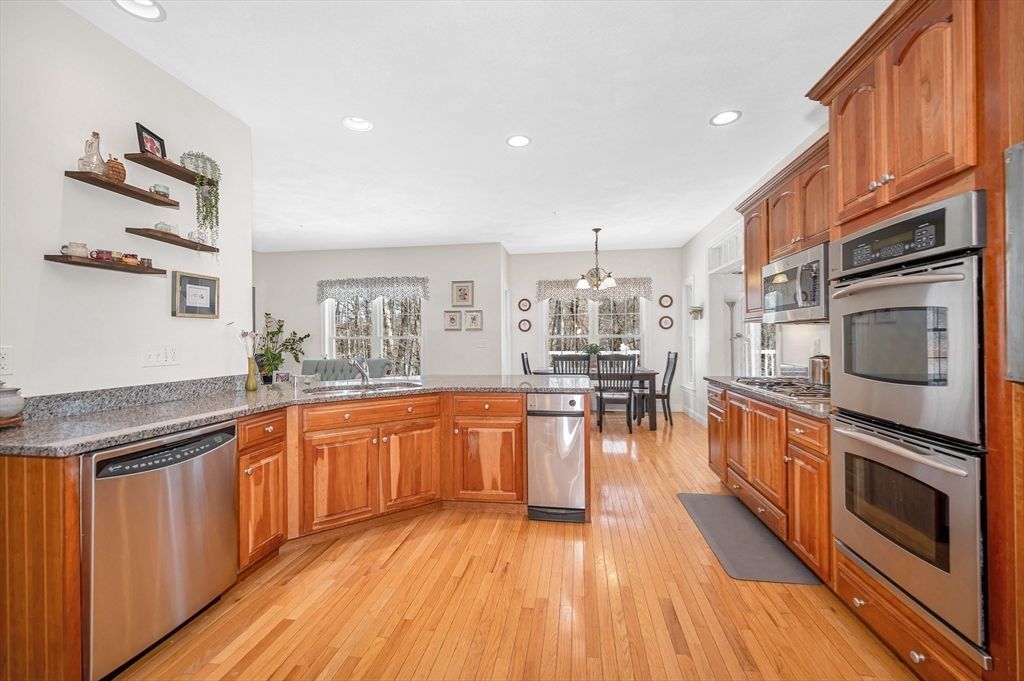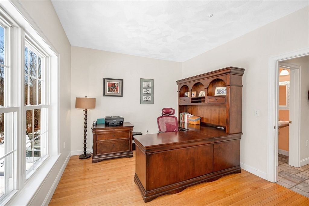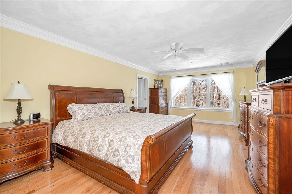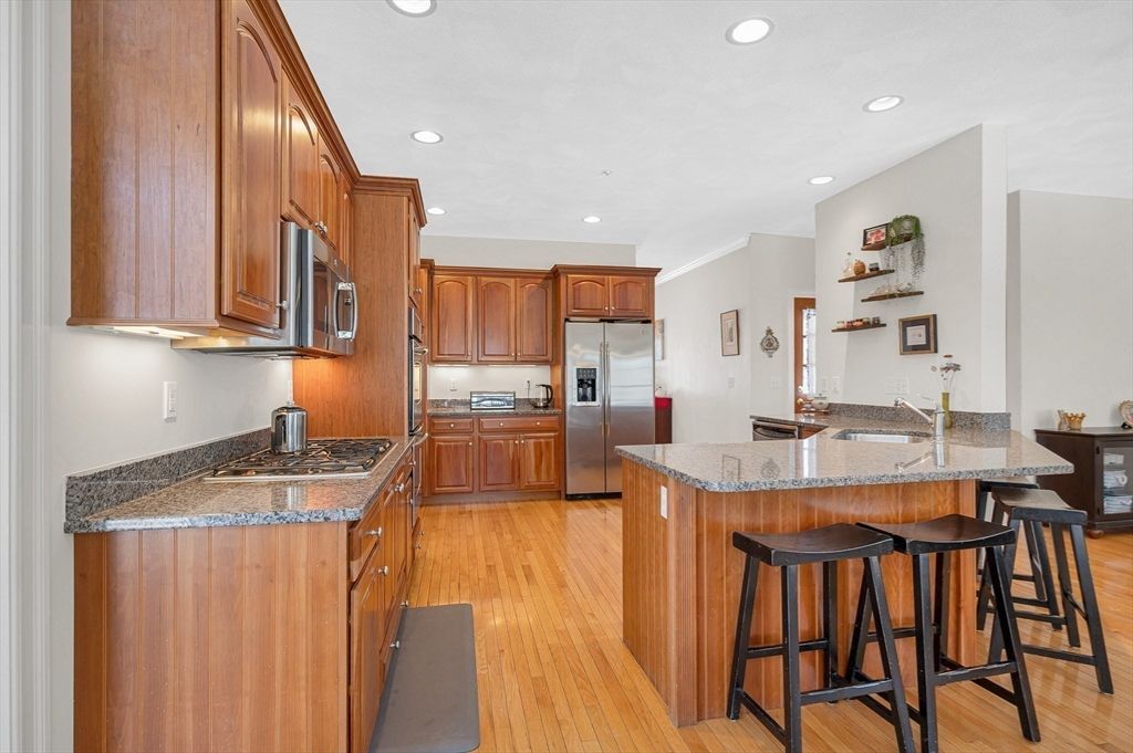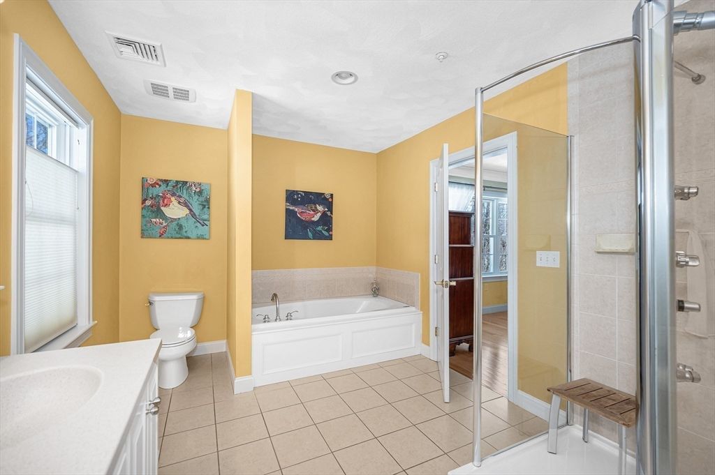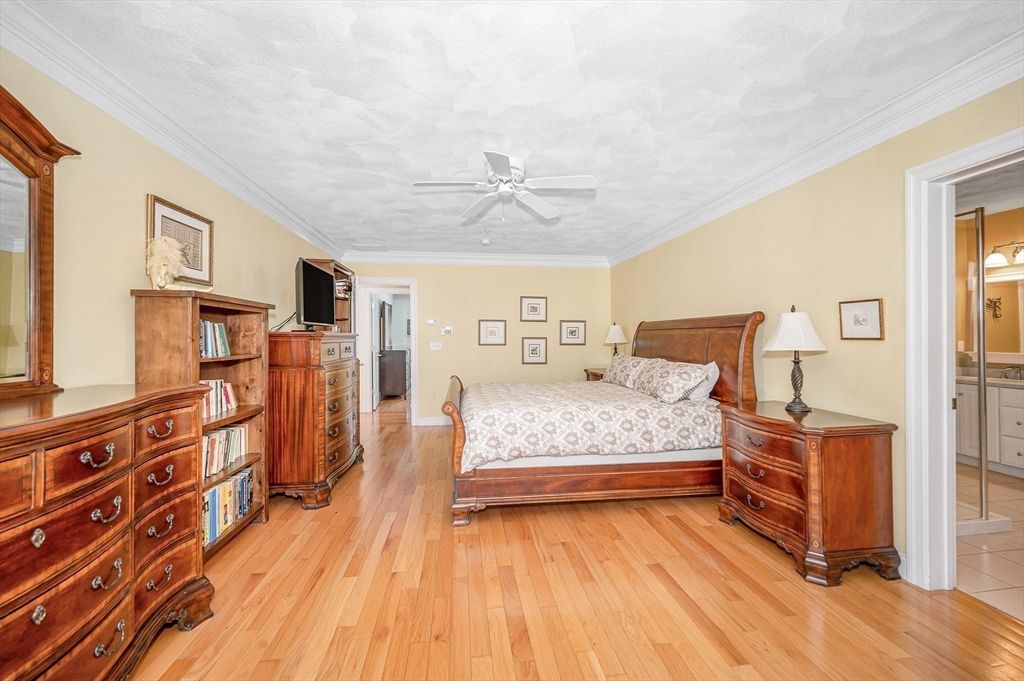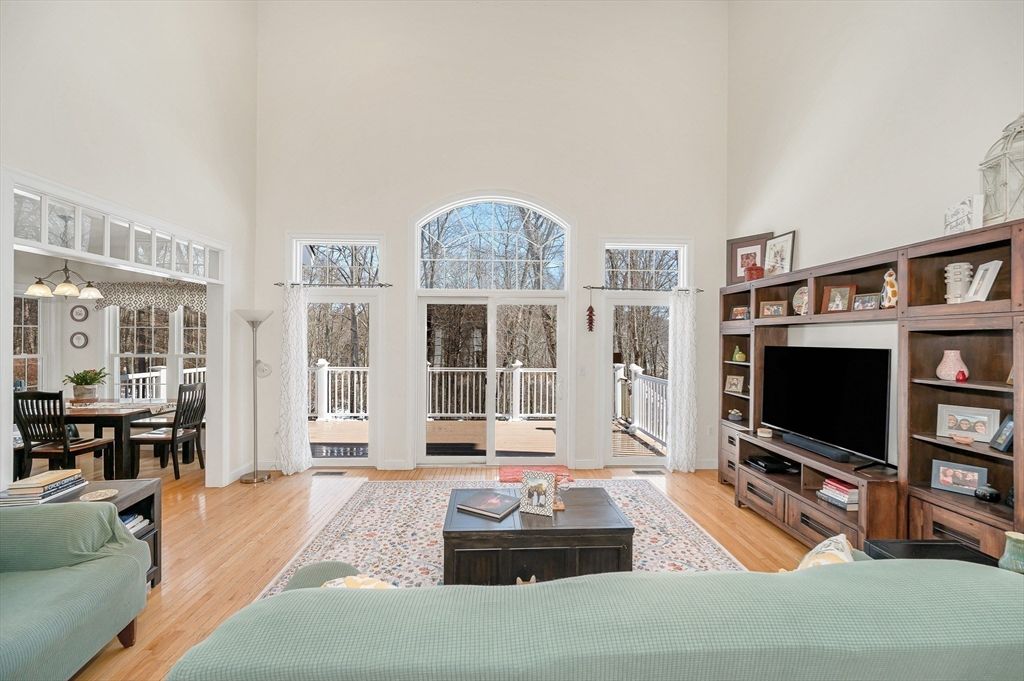 This striking Contemporary Colonial is ideally situated on a fabulous cul-de-sac centered around a charming village green and playground"”the heart of this 17-home neighborhood. This home is enhanced by exquisite perennial landscaping providing vibrant blooms & natural beauty from spring through fall. Relax on the wraparound stone farmer's porch and enjoy peaceful seasonal views. The dramatic TWO-STORY FOYER leads into the GREAT ROOM w/interior balcony & a wall of windows with a slider leading to the oversized composite deck. The chef's kitchen offers ample cabinetry, granite counters & an enormous center island seamlessly flowing into the fireplaced den. Lovely formal dining room w/transom doorway. There is a nicely sized OFFICE or FLEX room on this level. Large primary bedrm ensuite w/walk-in closet, dual sinks, jetted tub & shower, 3 additional nicely sized bdrms & full bathrm w/dual sinks. Large 2c garage just steps to the 1st fl laundry rm. Basement offers expansion potential.
