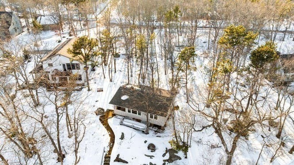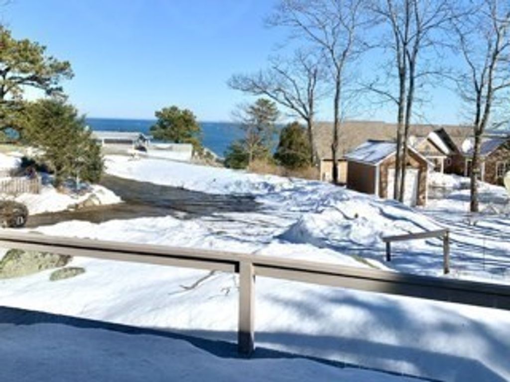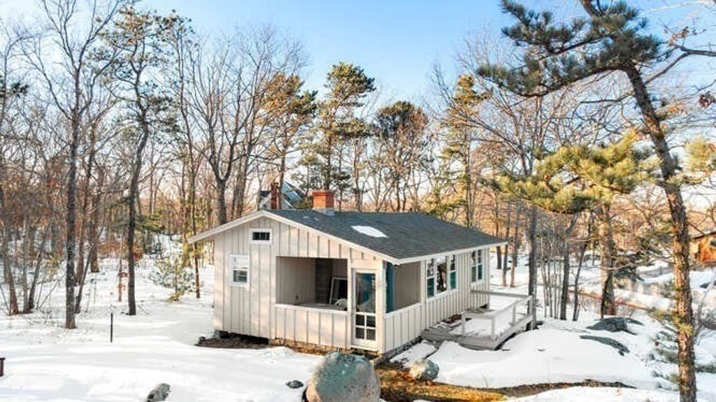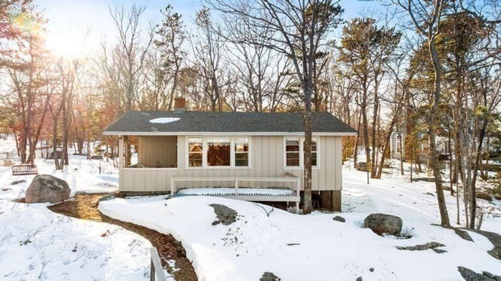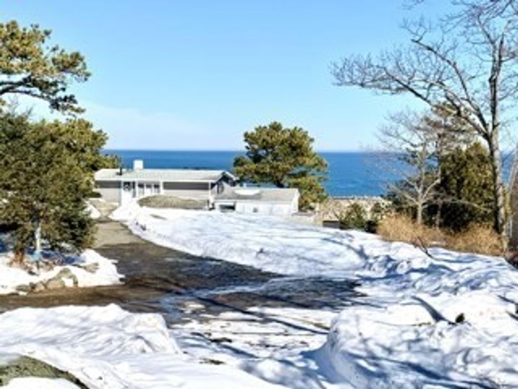 This quintessential classic summer cottage has ocean views of beautiful Sandy Bay in Rockport. Situated high on a hill, across the street from Granite Pier, you can enjoy the ocean breeze, sunrises and sounds of the sea from the front deck or screened porch. The level lot is approximately .53 acres with mature trees and granite rocks typical to the area. Upon entering you will find a large picture window in the living room, an eat-in kitchen, two bedrooms and one bath. The original pine wood paneling and vaulted ceilings give the rustic feel, allowing you to make it your own. Currently a summer residence this property offers the opportunity for a possible year-round residence. Buyers are responsible for due diligence on possible year-round building permits. Convenient to beaches, Bearskin Neck, Shalin Liu Concert Hall, the library, parks, shopping and restaurants.
