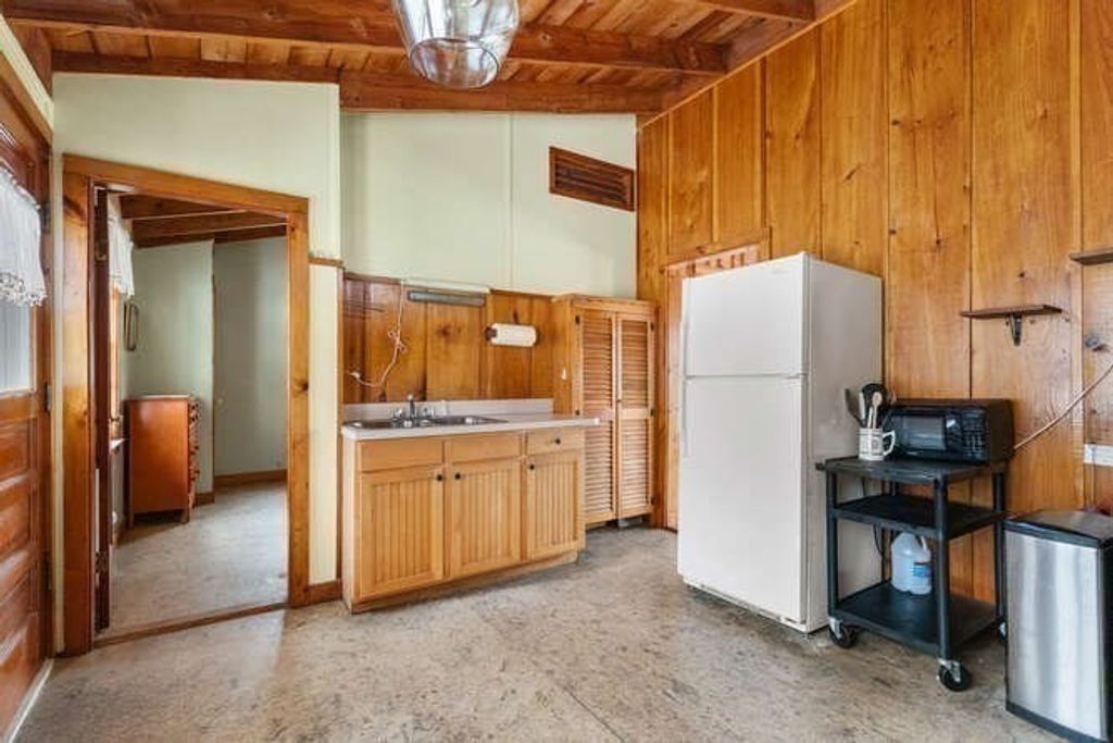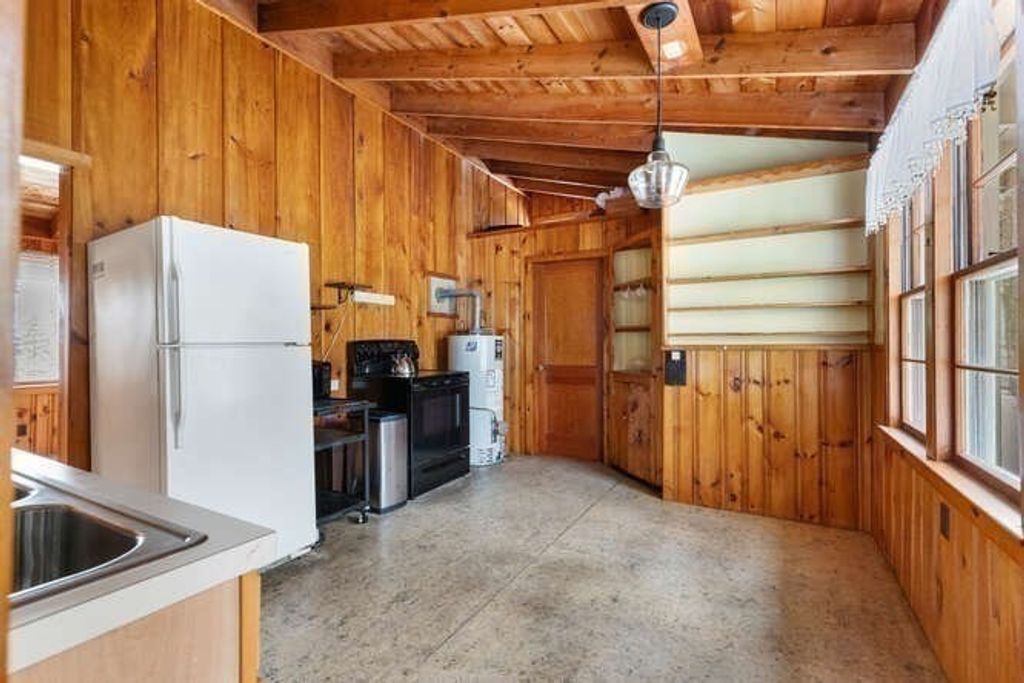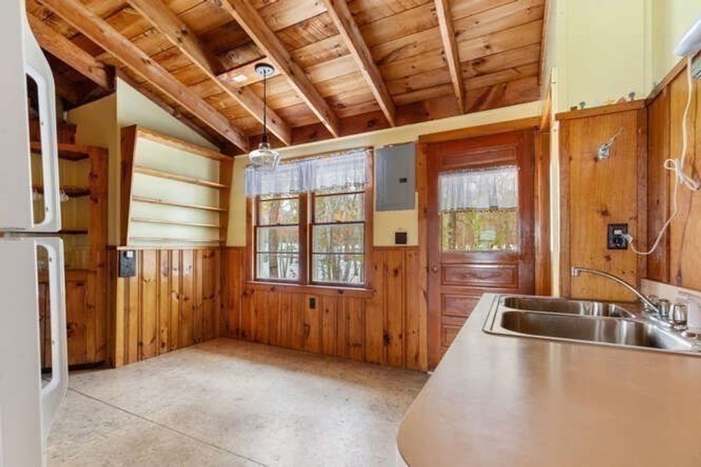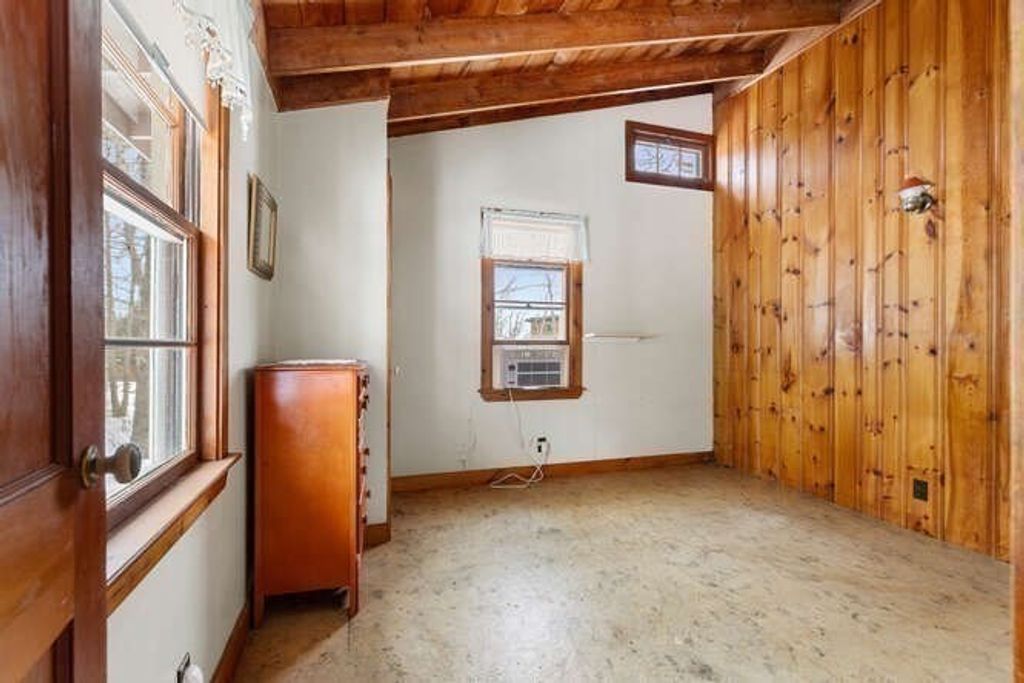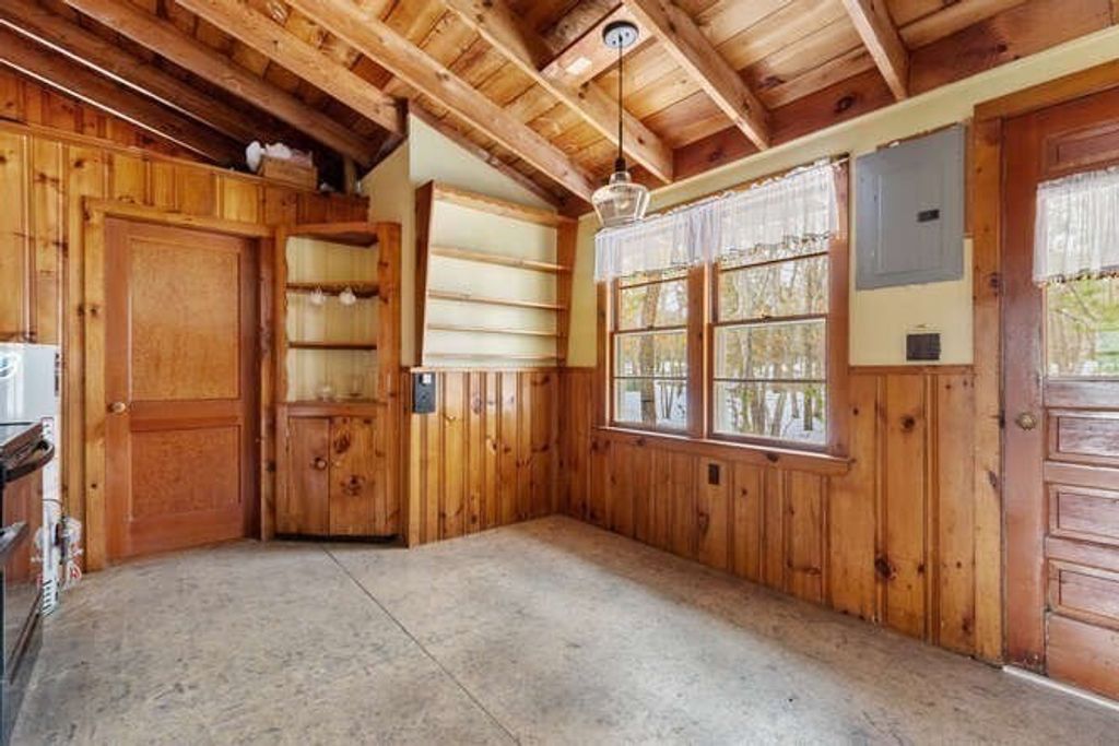 This quintessential classic summer cottage has ocean views of beautiful Sandy Bay in Rockport. Situated high on a hill, across the street from Granite Pier, you can enjoy the ocean breeze, sunrises and sounds of the sea from the front deck or screened porch. The level lot is approximately .53 acres with mature trees and granite rocks typical to the area. Upon entering you will find a large picture window in the living room, an eat-in kitchen, two bedrooms and one bath. The original pine wood paneling and vaulted ceilings give the rustic feel, allowing you to make it your own. Currently a summer residence this property offers the opportunity for a possible year-round residence. Buyers are responsible for due diligence on possible year-round building permits. Convenient to beaches, Bearskin Neck, Shalin Liu Concert Hall, the library, parks, shopping and restaurants.