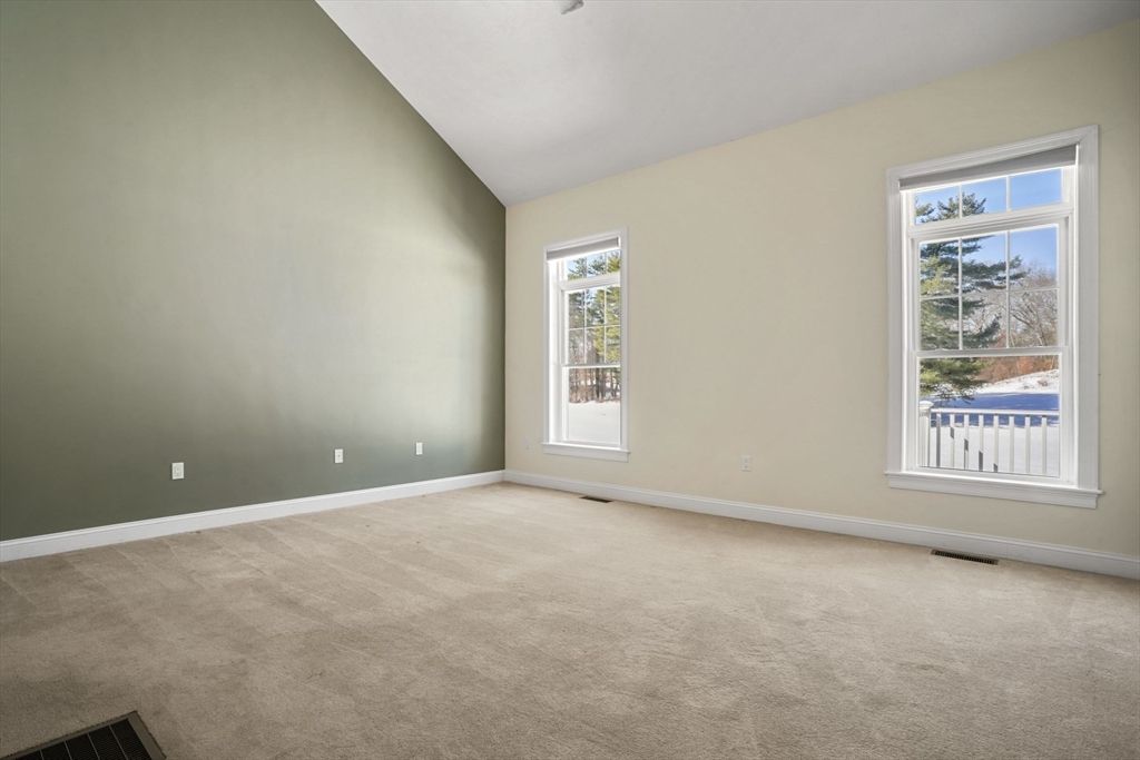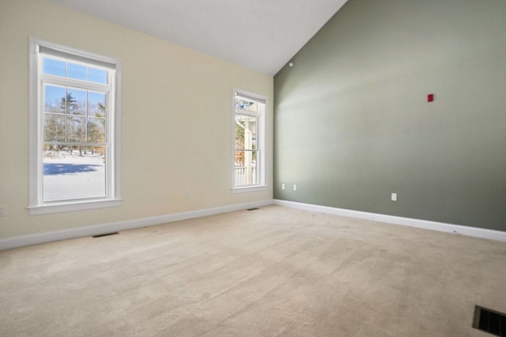 Welcome to maintenance-free living at The Meadows, a highly desired 55+ community nestled alongside the picturesque New Meadows Golf Club! A welcoming foyer opens into a thoughtfully designed floor plan featuring hardwood floors, soaring ceilings, oversized windows, & an open-concept layout that fills the home w/natural light. The spacious kitchen offers abundant cabinetry, SS appliances, granite counters & breakfast bar. The main-floor primary suite provides ultimate convenience w/a walk-in closet, luxurious bath & vaulted ceiling. Upstairs is a versatile loft sitting area, generous media/bonus room, & a 2nd bedroom w/an adjacent full bath. ideal for guests. With abundant closet space & a two-car attached garage, storage & functionality are seamlessly integrated throughout. The unfinished walk-out basement offers tremendous potential for future expansion or ample storage. New furnace installed in 2024 as well! Pet friendly & close to major highways, (Rt 1, 95), yet peaceful & serene.