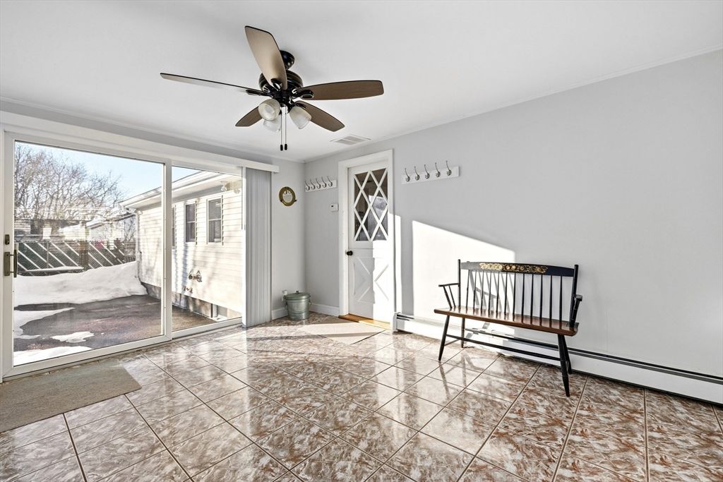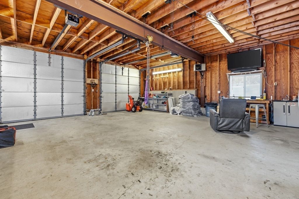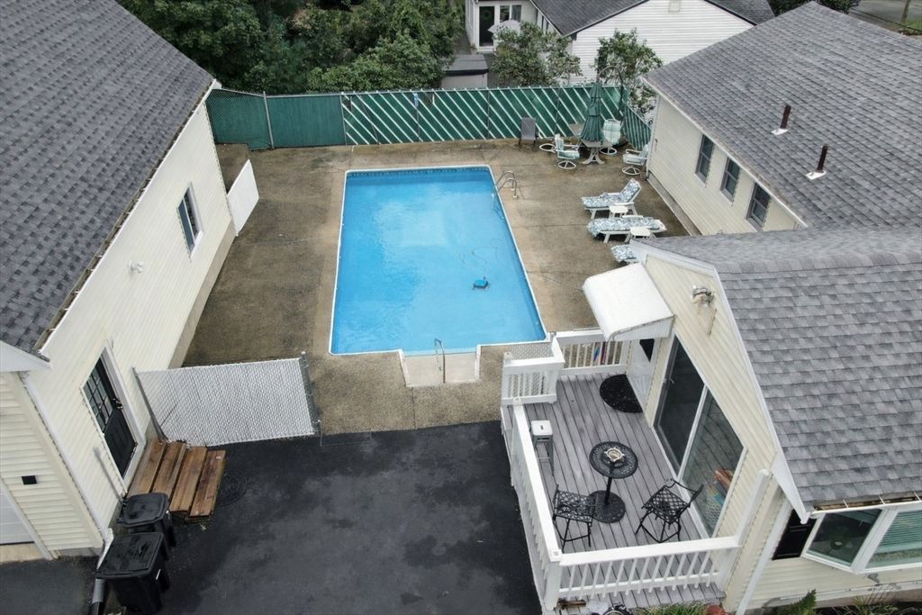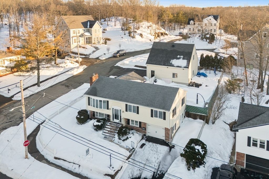 Pool season is coming! This beautifully maintained split entry home on a corner lot in a picturesque Peabody dead end neighborhood offers incredible indoor/outdoor living! Plus a **STANDOUT 28x32 OVERSIZED 2+ car garage/barn** w/finished upper level perfect for car enthusiasts, hobbyists, or workshop space. Inside, the main level features a beautiful white cabinet kitchen w/stainless steel appliances, island seating for up to 6 open to the dining area + fireplaced living room. The 4 season room off the kitchen overlooks the outdoor space. Three bedrooms w/hardwood floors include a primary bedroom w/ private half bath. The finished lower level boasts a family room with fireplace, full wet bar, full bath, office, and laundry with access to the one car garage. Outside, the fenced backyard is designed for entertaining with an in-ground pool (heat pump 2017), patio, and 3 driveways for lots of parking. Central air, irrigation, + convenient location w/easy access to major highways.