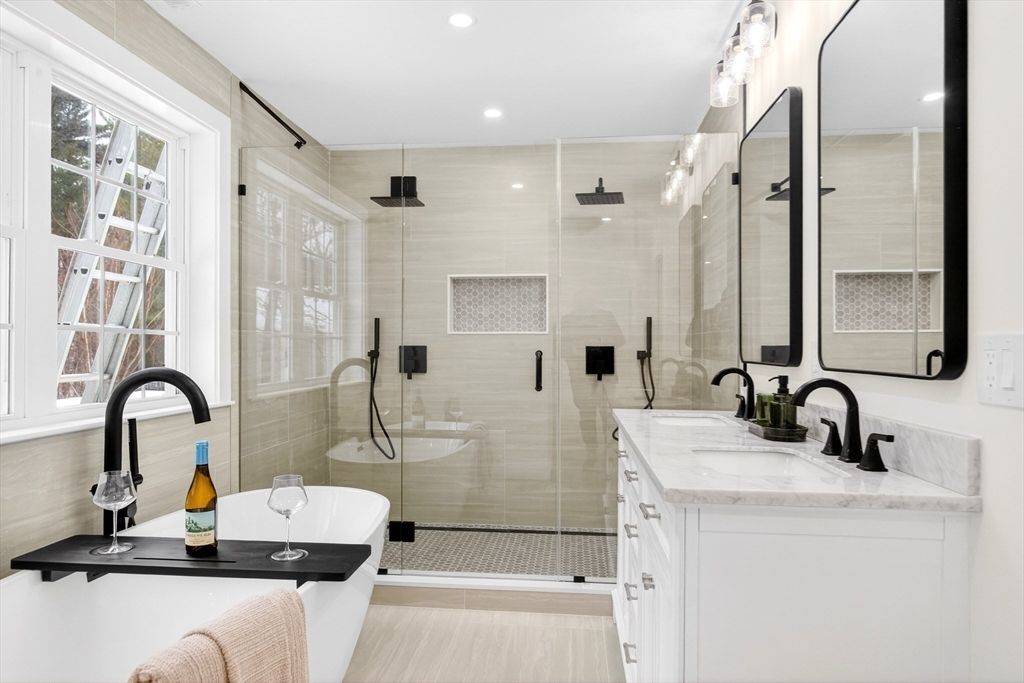 Estate-Style Residence on 1.36 Acres, offering 4,000+ sq ft of completely reimagined living space with 4 bedrooms and 4.5 baths. Set on an expansive private lot, this exceptional residence blends modern design with the presence of an estate-style property. The thoughtfully redesigned layout features an open concept connecting the living room, dining area, and a stunning designer kitchen with custom cabinetry, premium countertops, and high-end finishes, perfect for everyday living and elegant entertaining.The impressive primary suite offers a luxurious retreat with a spa-inspired bath and generous closet space. Additional finished areas include a finished attic and lower level, ideal for a home office, gym, media room, or guest accommodations.Extensively renovated with the quality and feel of new construction, this rare property offers refined finishes, modern systems, and move-in ready convenience near top-rated North Andover schools, parks, shopping, and commuter routes.