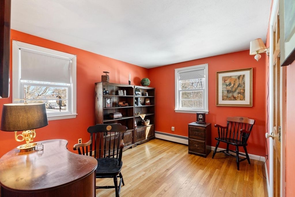 So many great options come with this meticulously maintained 4+ bedroom home in downtown Essex owned by one family for almost 60 years. Currently used as a single-family but was town-approved as a 2-family, this 2,300+ sf residence features a flexible layout that adapts easily to various needs including one-floor living. The open-concept main level with hardwood flooring and a seamless flow between the kitchen-dining-fireplaced living area, also has a primary bedroom, 1.5 baths and 2 rooms - think bedrooms or offices. 3 additional large bedrooms and a full bath are upstairs. A heated bonus room with a fireplace, workshop area and substantial storage space are in the basement. A deck and expansive yard - the lot is 0.7 acres - offer generous outdoor space. Ample off-street parking and a garage enhance this property's versatility.