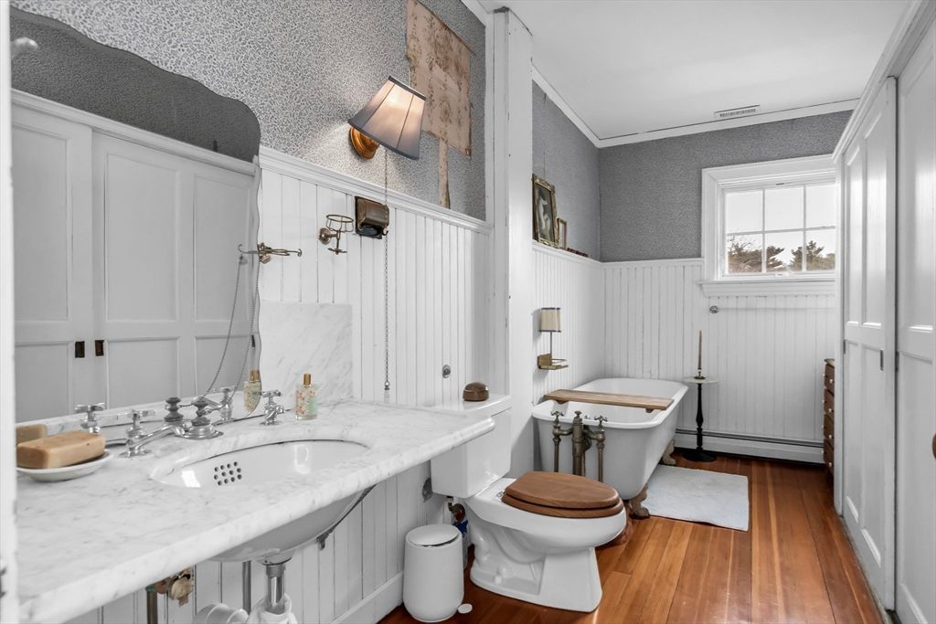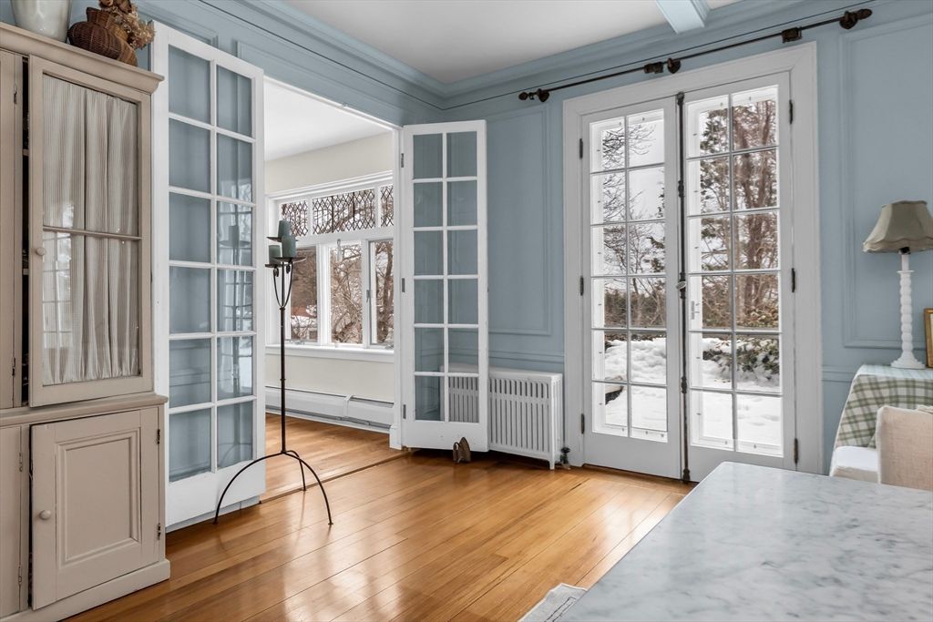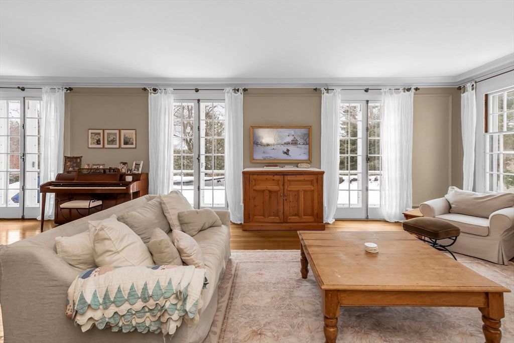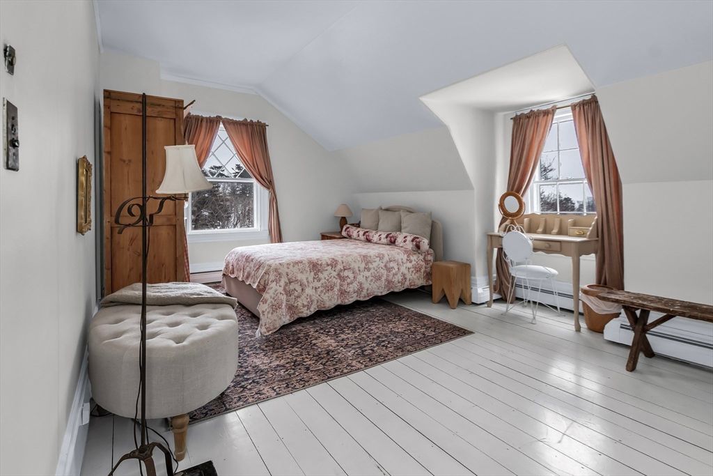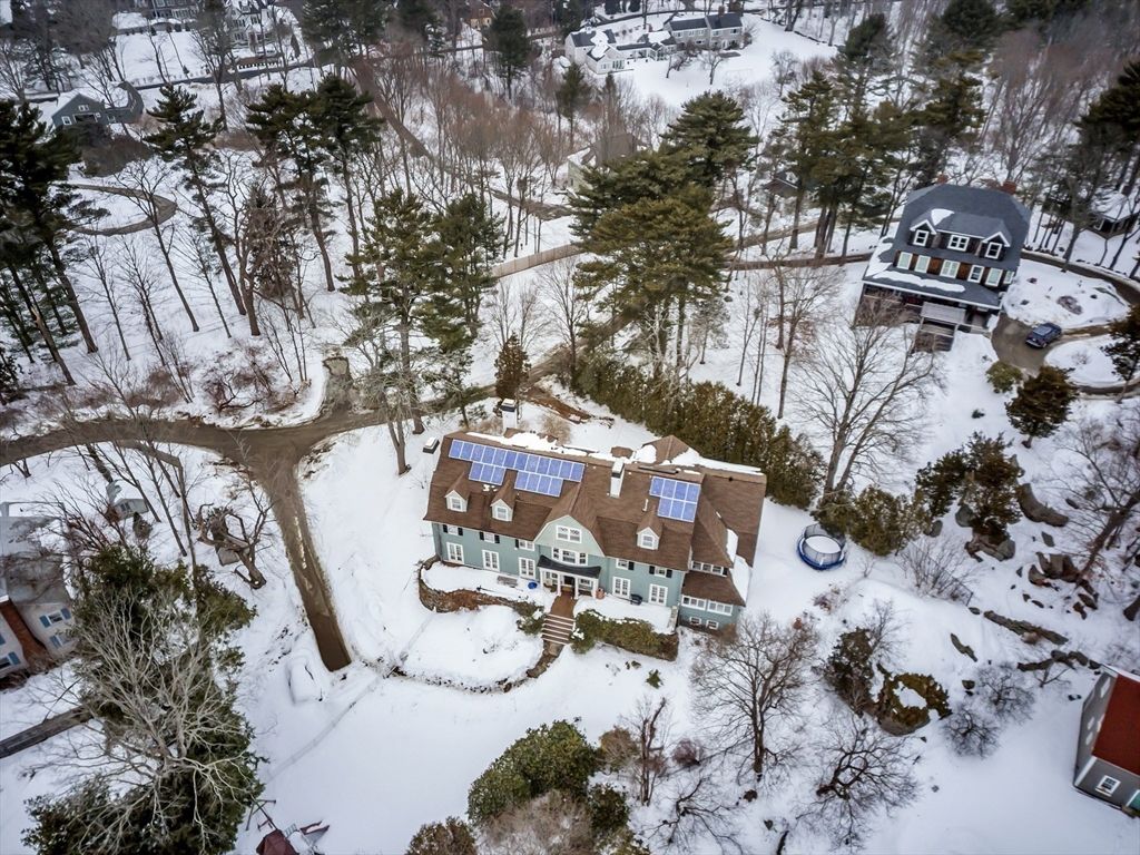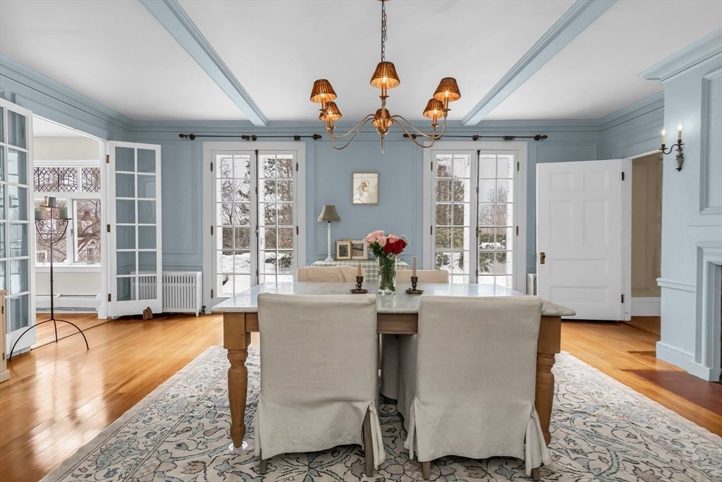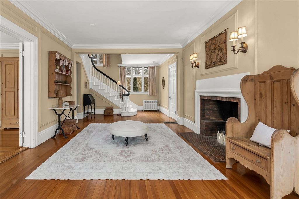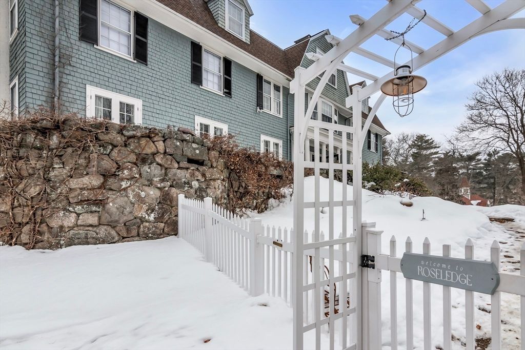 Beverly Farms! Rose ledge is an elegant grand residence moments from private West Beach, the village center, and commuter rail. Situated on approximately one acre of landscaped grounds, the property offers seasonal peeks of the ocean. Inside, a welcoming entry hall with classic millwork and a functional fireplace creates immediate warmth. Updated French doors bring in ocean breezes and natural light, opening to spacious living and dining areas ideal for everyday living and entertaining. Distinctive period details appear throughout, including nine fireplaces. The generous primary suite includes an adjoining study. Recent upgrades include a new roof, central A/C and heat, new deck, fenced yard, and solar panels. A separate four bedroom apartment with its own entrance provides flexible space for guests. This exceptional property blends privacy, space, and coastal charm just minutes from local amenities.