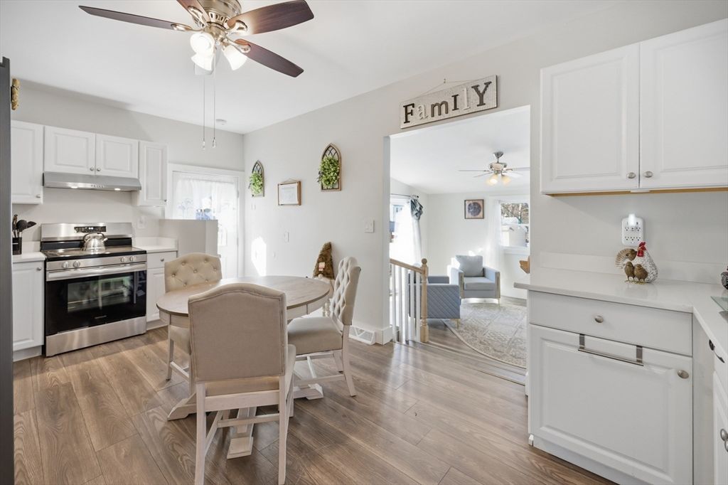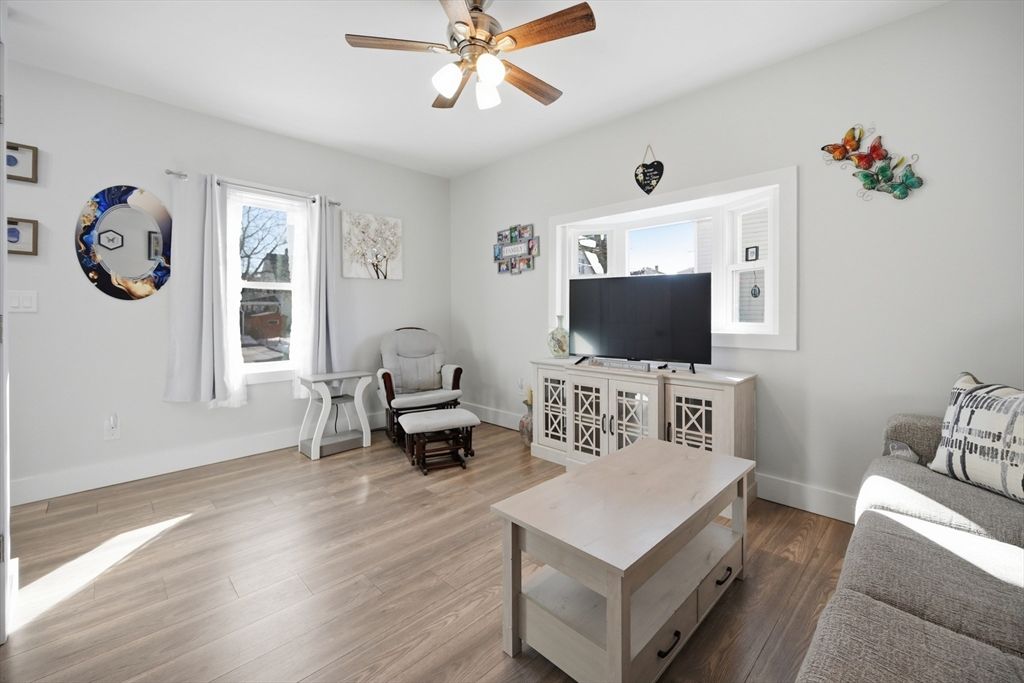 Welcome to 70 Wyman St., a home lovingly cared for by the same family for generations. This beautifully renovated 3-bedroom, 1-bath home offers over 1,200 square feet of comfortable living space. The spacious eat-in kitchen features ample cabinetry, quartz countertops, & stainless steel appliances. The first floor includes a flexible formal living room that can also be used as a dining room, a sunken family room with a slider leading to a fenced-in yard with a shed that has electric, an updated bathroom with a stunning tiled walk-in shower, three well sized bedrooms, including a convenient first floor bedroom. Major updates include a new roof, heating system, plumbing, electrical, spray foam insulation, Harvey windows, doors, & luxury laminate flooring. Located in sidewalk-lined neighborhood, just 10 miles to Boston, close to shopping & Lynn Woods Reservation. The perfect home for your next move. Showings begin at open house on Saturday March 14th.