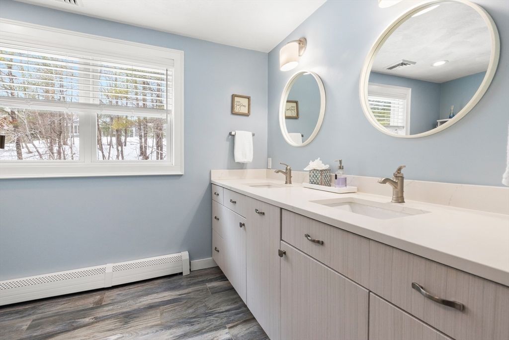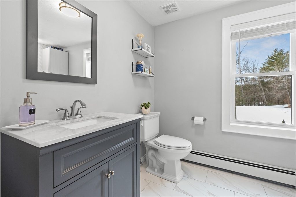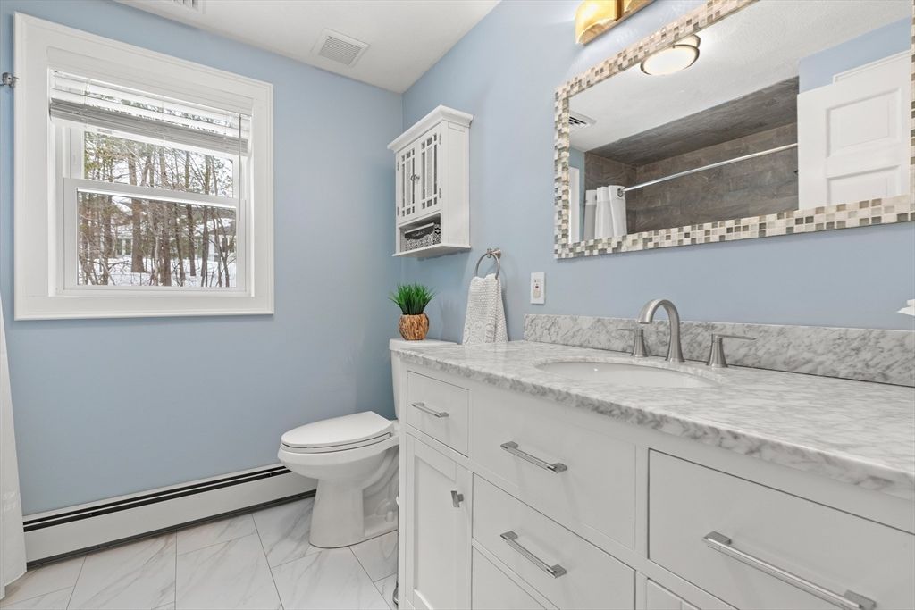 Completely updated, this modern Colonial on a picturesque 1+ acre lot awaits its new owner. Built in 1993, this spacious 3+ bedroom, 3.5-bath home w/ 2-car garage was completely renovated in 2017, including a new roof, siding, windows, hot water tank, and a septic system. The main floor features a living room/office, beautiful dining room, a huge eat-in kitchen with miles of counter space and a built-in banquette bench"”all opening to an inviting family room with a cathedral ceiling, wood-burning fireplace & access to a delightful patio & deck overlooking the yard. Upstairs, you'll find a nursery & 3 bedrooms with double closets, including the primary with an en suite bath, walk-in smart shower with dual temperature settings, and radiant-heated floors. Partially finished w/ 3/4 bath, the 3rd floor is ready for your finishing touches to 2 bonus rooms! The full unfinished basement has limitless potential. Even more perks"”Pinefield neighborhood, close to the beach, restaurants, and more!