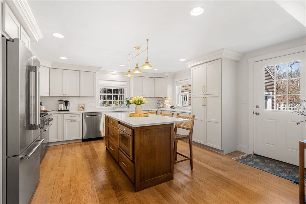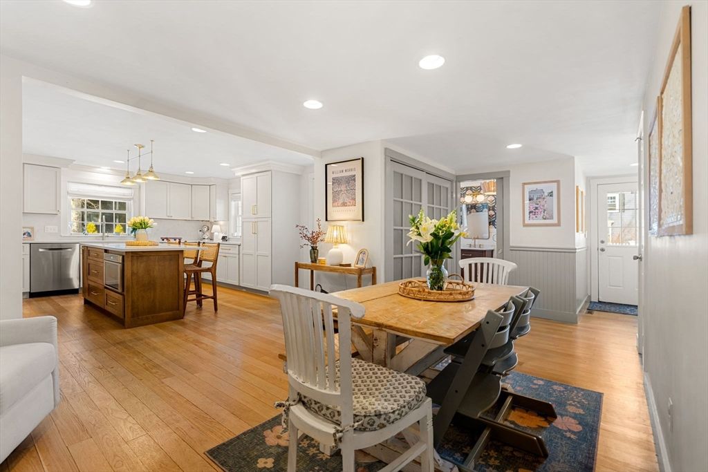 Love where you live in 2026 with this beautifully reimagined 4-bedroom, 2.5-bath residence in the heart of Newburyport's North End. This fully renovated home blends timeless elegance with modern luxury, featuring rich hardwood floors & sun-drenched interiors throughout. The stunning chef's kitchen serves as the centerpiece of the home, showcasing a large quartz island, sleek stainless steel appliances & a seamless open-concept flow into the dining area"”perfect for entertaining & everyday living. Two inviting living spaces provide flexibility for relaxation, gatherings and play. The main level offers the convenience of a spacious bedroom, a full bath, and a laundry room. Upstairs, three generously sized bedrooms create a peaceful retreat. Venture outside to a private, enclosed backyard with a patio & deck, ideal for outdoor entertaining. A detached two-car garage offers additional storage. Just minutes from Newburyport's vibrant downtown, waterfront, Atkinson Common and commuter routes.