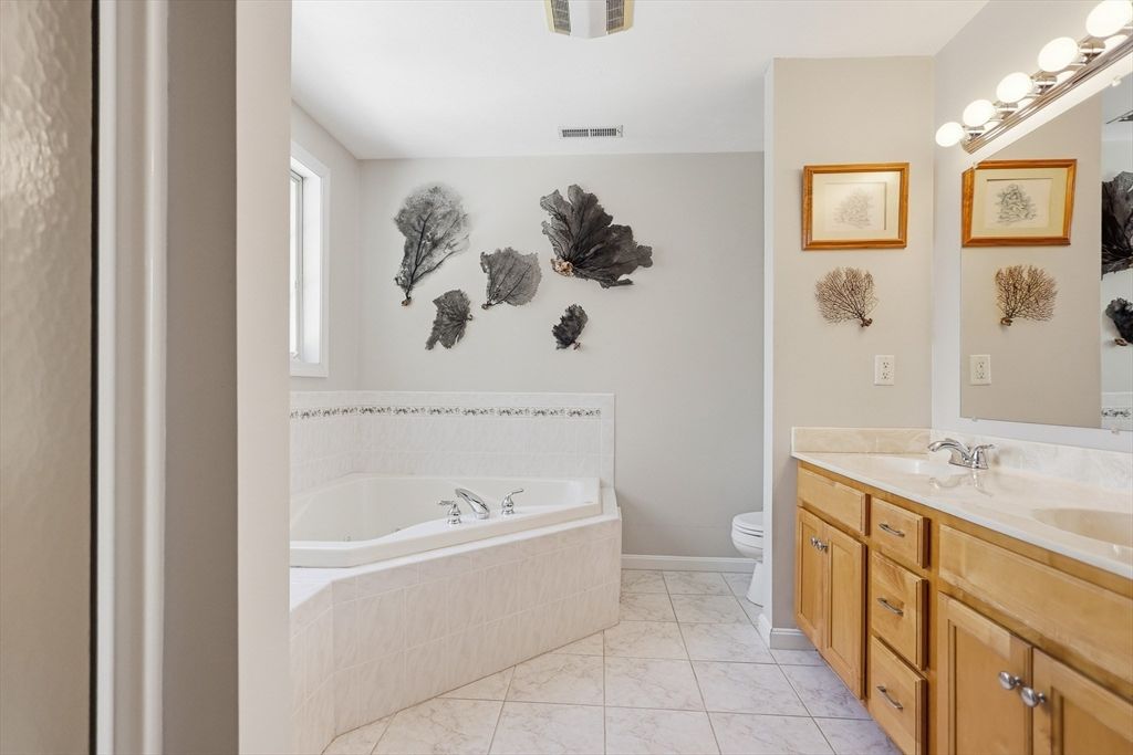 Discover comfort, flexibility, and serene surroundings at The Fairways, a welcoming 55+ community. This beautifully designed home offers peaceful wooded views from the private back deck"”an ideal setting for outdoor dining, potted plants, or simply relaxing and enjoying nature. Inside, the open-concept layout create a bright space for everyday living and entertaining. The living room features a gas fireplace, vaulted ceiling, bay window, and hardwood flooring, while the dining room is accented with hardwood floors and classic wainscoting. The kitchen offers an island, stainless steel appliances, tile backsplash, hardwood floors, and a slider leading directly to the deck. The home provides exceptional flexibility with two primary bedroom suites. Upstairs also features an open-concept family room and a versatile office that can easily serve as 3rd bedroom. Additional highlights include a walk-out basement, attached 1-car garage, and a first-floor bath with washer & dryer hookups.