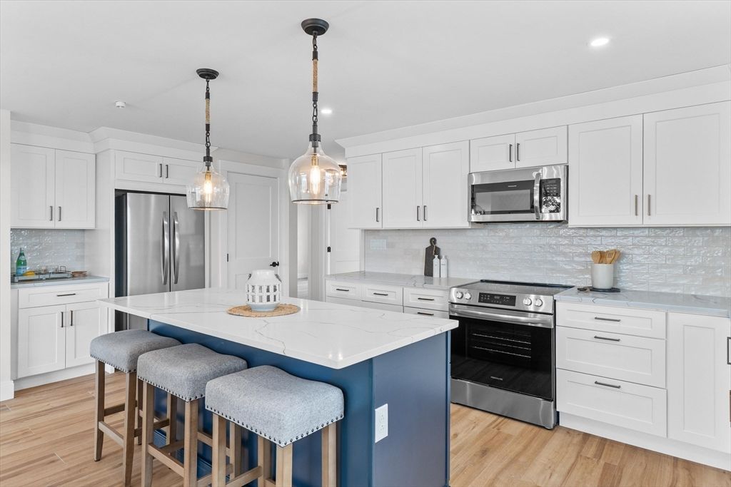 Welcome to coastal living at its finest! This newly constructed middle-unit condo at 30 Cable Ave offers 3+ spacious bedrooms 2 full baths, plus a versatile flex space perfect for additional guest bedroom or a home office. Located within walking distance of Salisbury Beach and the lively beach center, you'll enjoy the best of seaside dining, shopping, and entertainment just steps away. Designed for modern living, this home features a bright, open-concept layout with stylish finishes throughout, including white shaker cabinets, quartz countertops, and stainless steel appliances in the kitchen. Luxury vinyl plank flooring flows seamlessly through the space. Relax on your private deck or take advantage of thoughtful additions like ductless mini-split systems for year-round comfort, EV charger, and smart home upgrades. With no rental restrictions, this property is an excellent investment opportunity or a stunning year-round retreat.