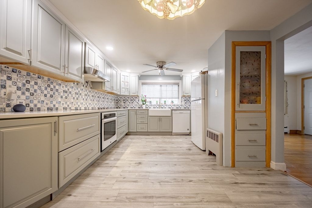Spacious and Updated 2 Bedroom on a Quiet side street featuring 1,376 sq ft. Many of the major features are NEWER - Heating System (6yrs), Roof (6yrs), Kitchen (3yrs), Bathroom (7yrs), Fencing (2yrs). Spacious Bonus Room perfect for a 3rd Bedroom, Home Office, or Additional Living Space. Gorgeous Kitchen with Designer Cabinets, Farmhouse Sink, Granite Countertops, Backsplash, and Eat-in space. Bright Living Room with Hardwood Floors and working Fireplace. Solar Panels to keep energy costs Down. Ample storage in the walk-up attic, Basement, or Garage. Fenced-in yard with Sheds. Conveniently located under 2 miles to the Beach and MBTA Commuter Rail, while also having easy access to Boston via Rt 1A.